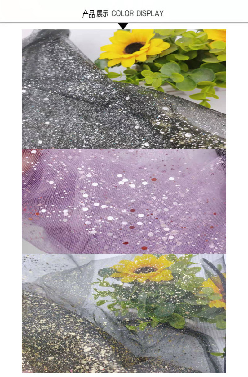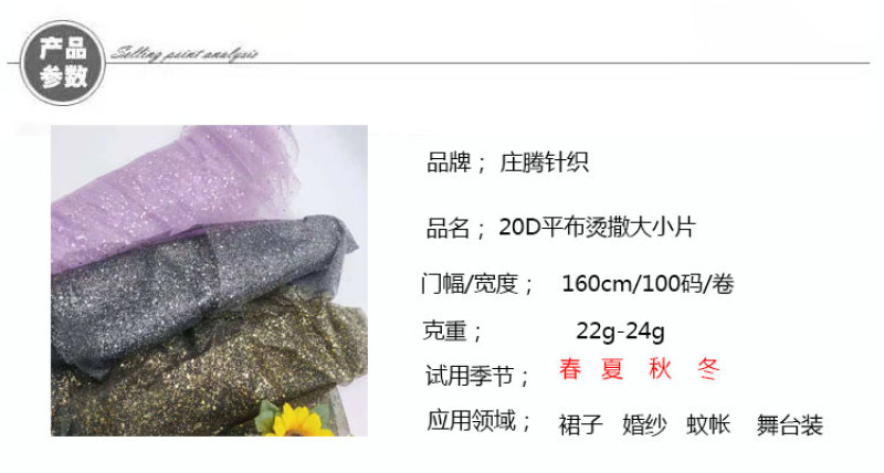 厂家直销20D平布撒闪粉布料喷粉亮片舞台装婚纱蓬蓬裙演出服布料