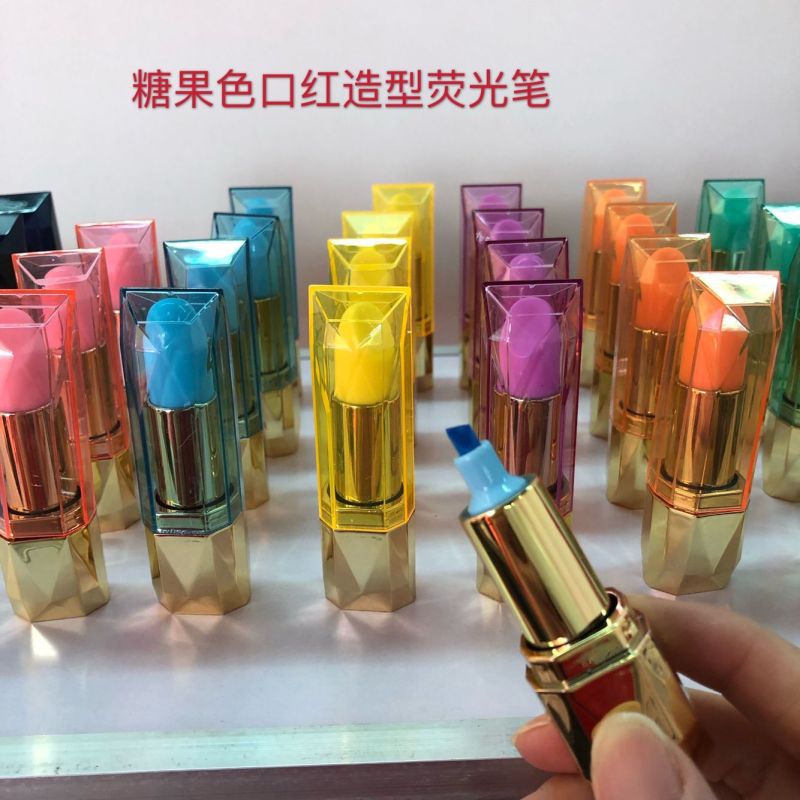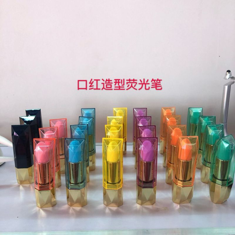 创意糖果色口红造型荧光笔、唇膏笔韩国创意文具学生奖品