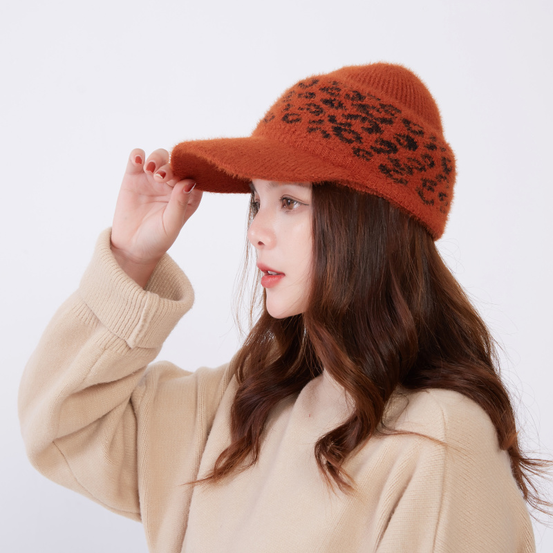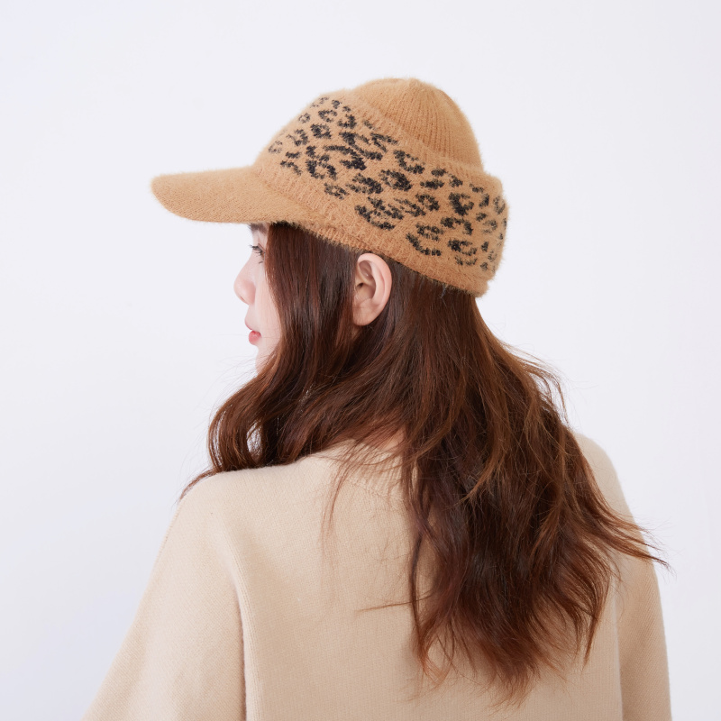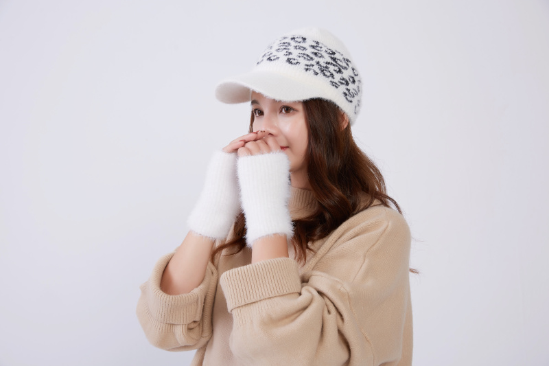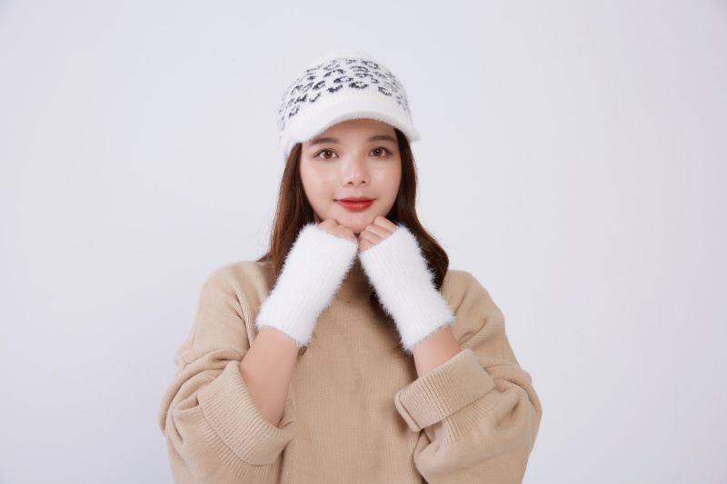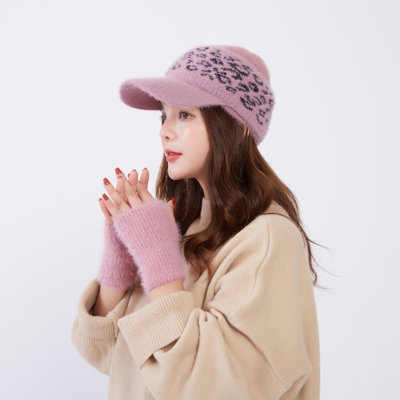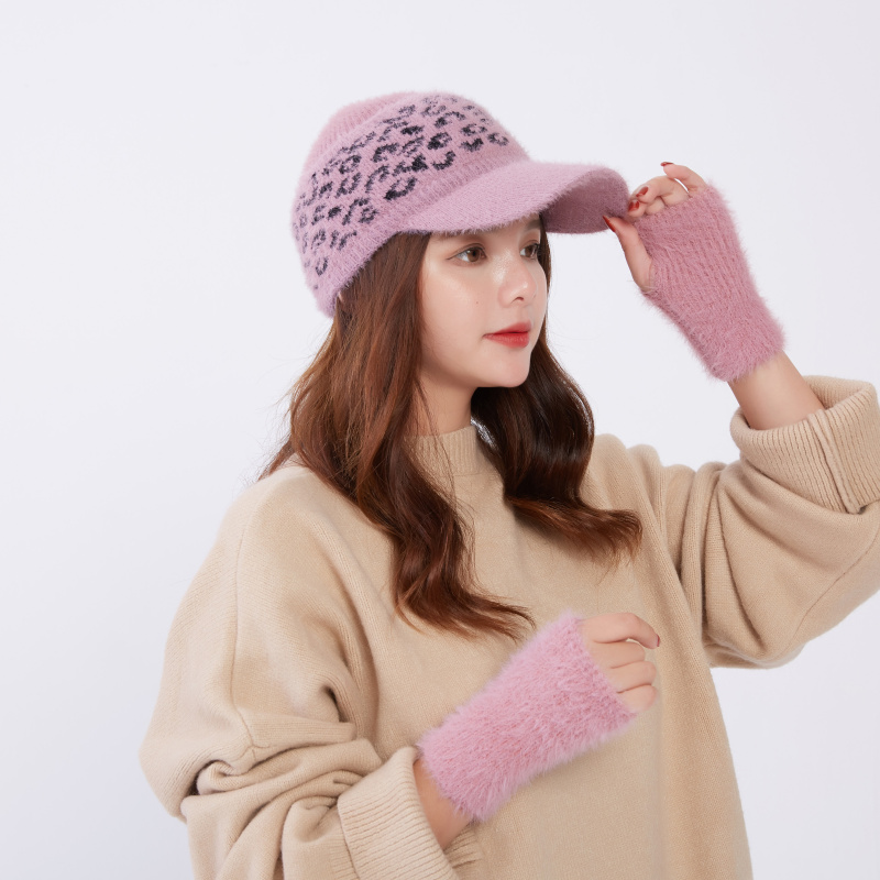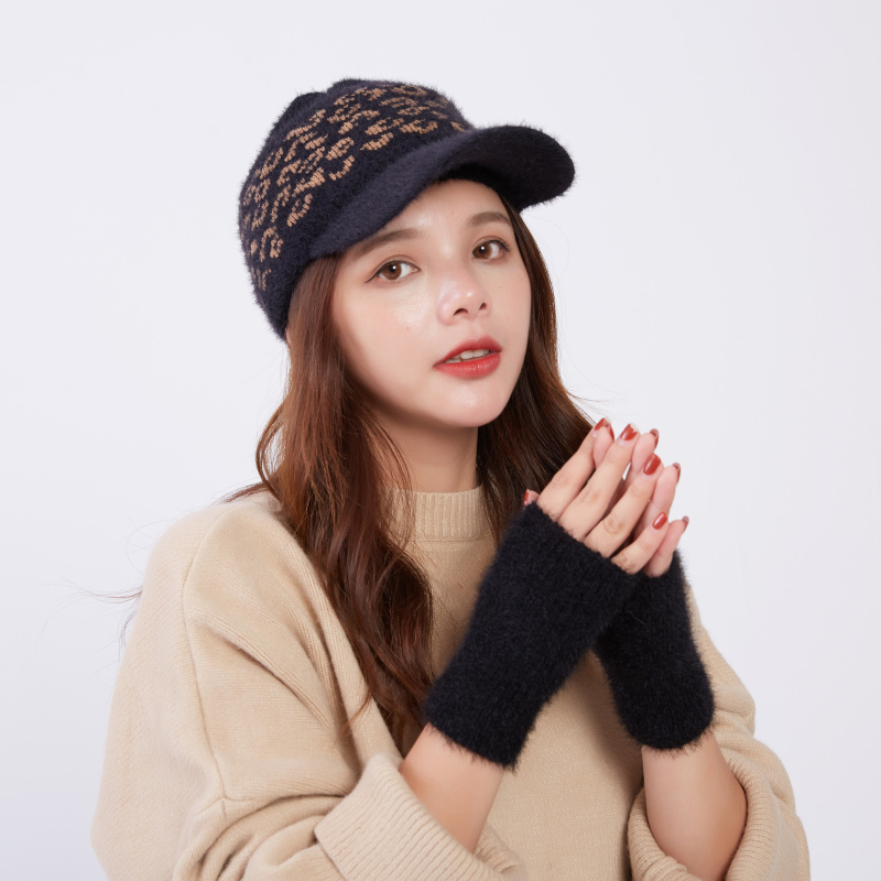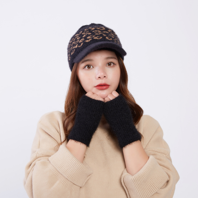 瓜皮帽空顶套装豹纹帽子手套新款针织帽