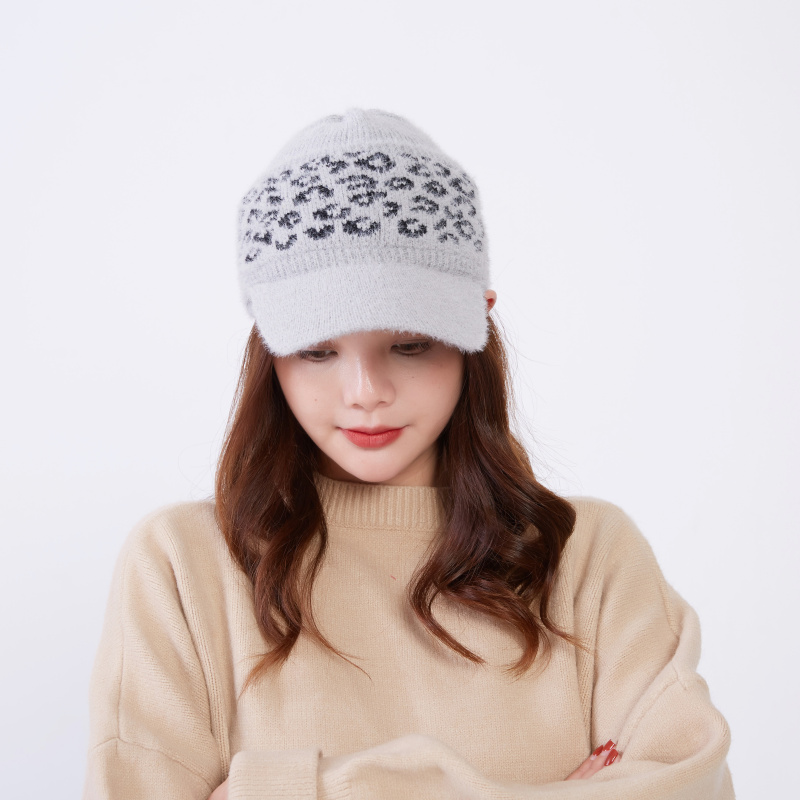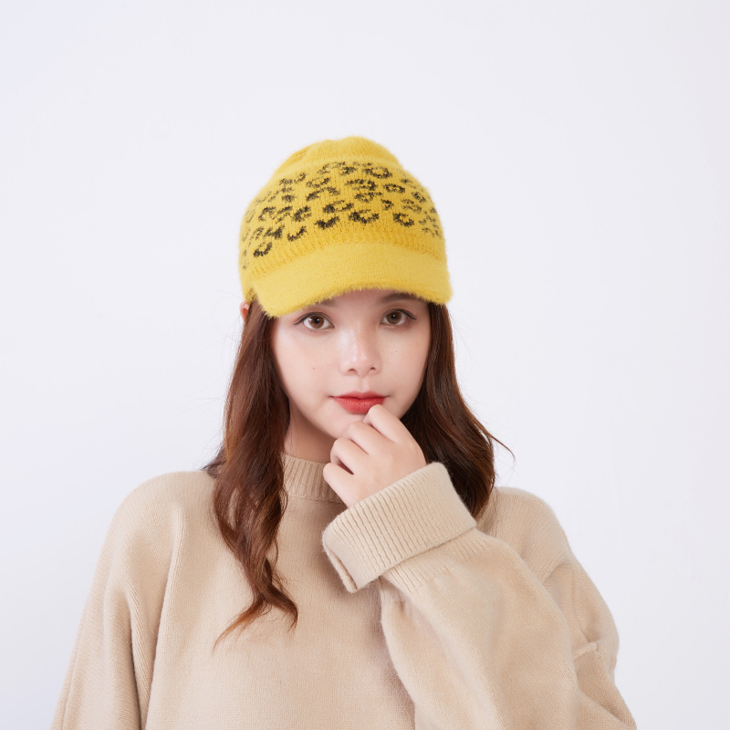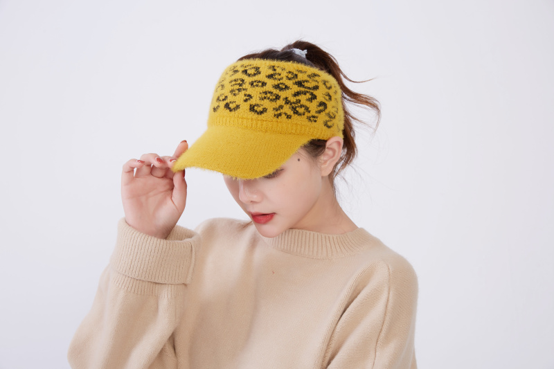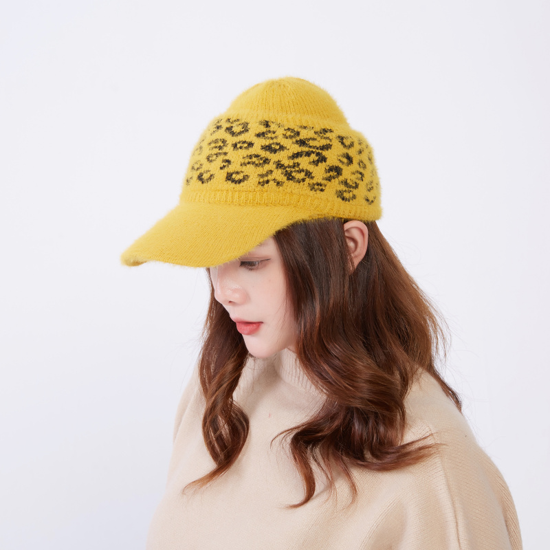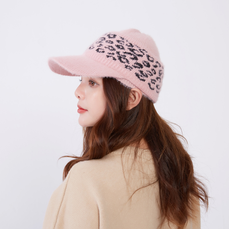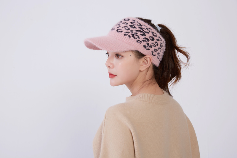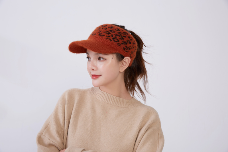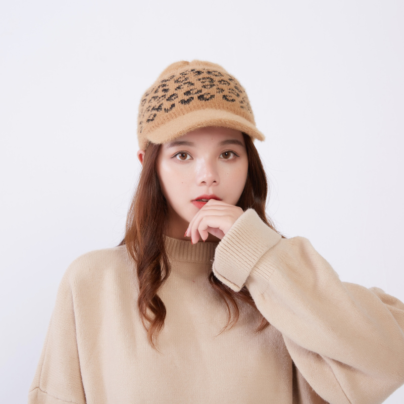 瓜皮帽空顶套装豹纹帽子手套新款针织帽