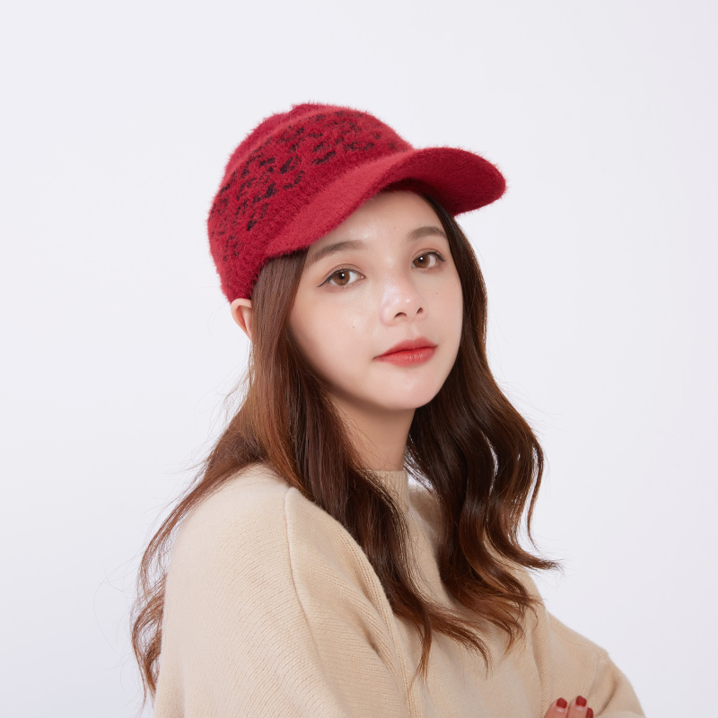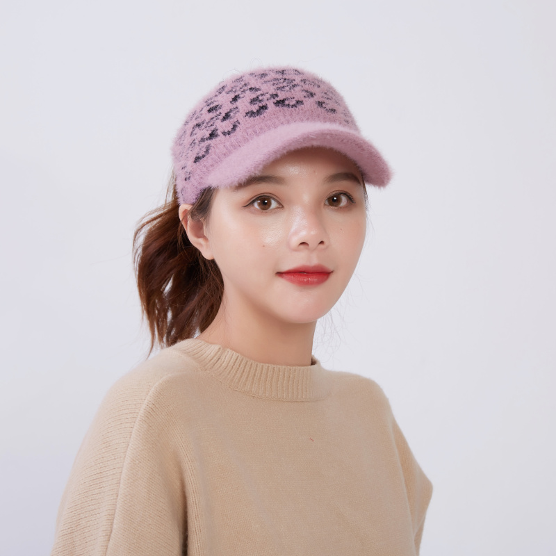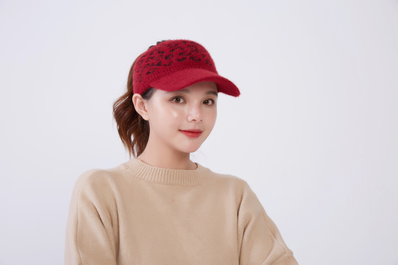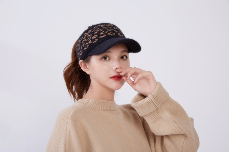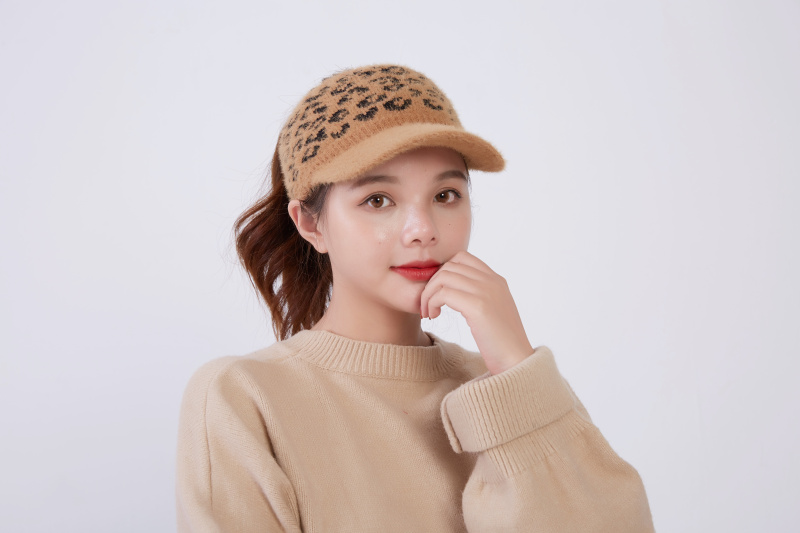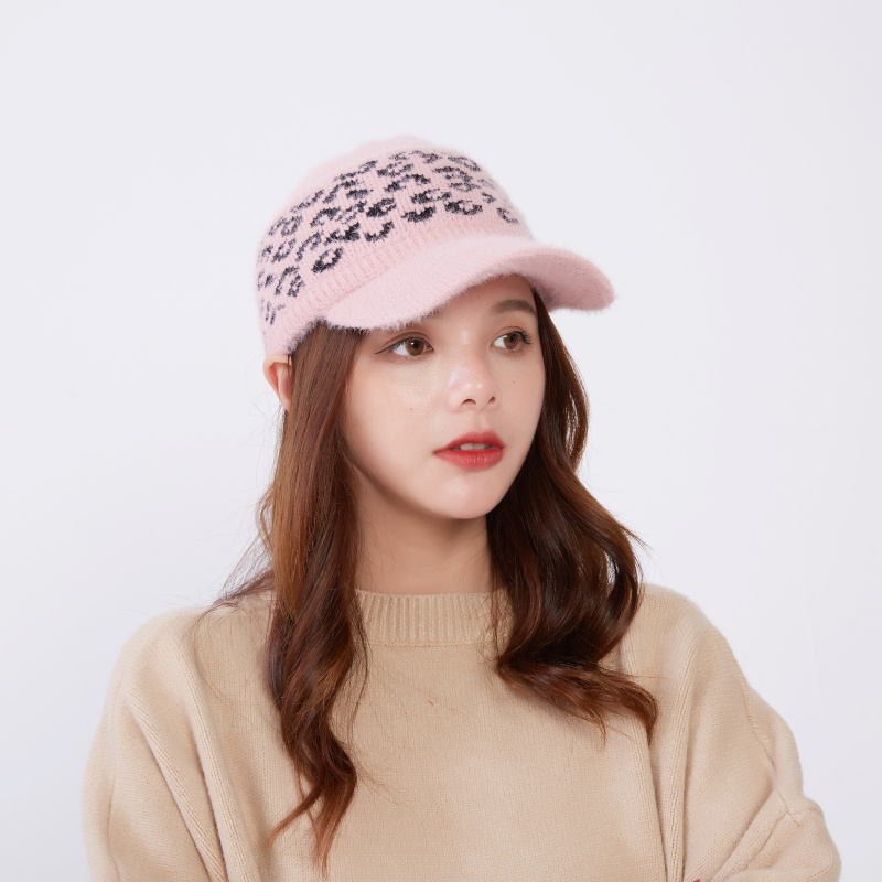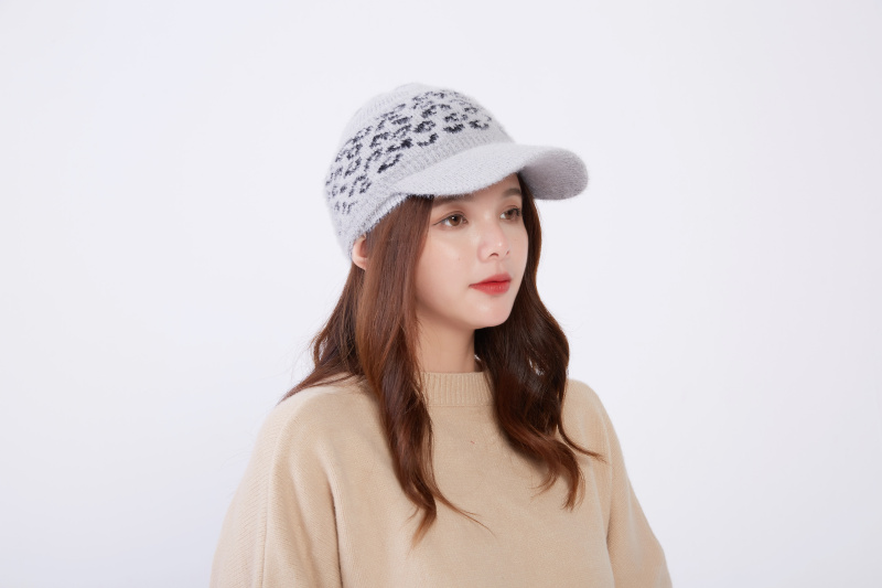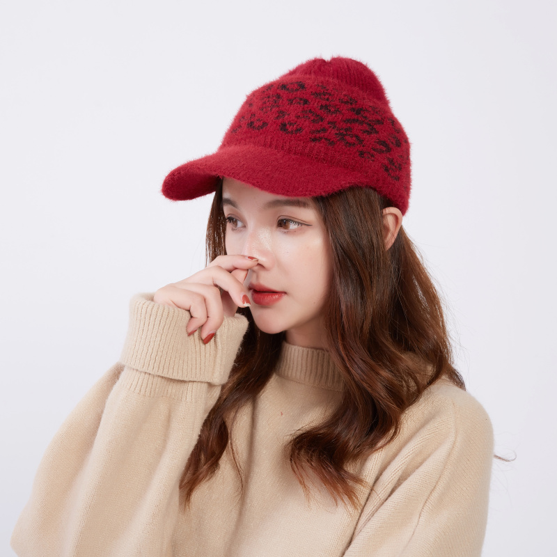 瓜皮帽空顶套装豹纹帽子手套新款针织帽