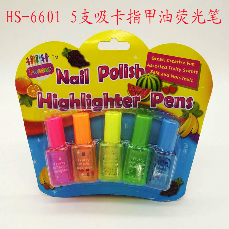Fomax 5支吸卡指甲油荧光笔 透明笔身指甲油荧光笔