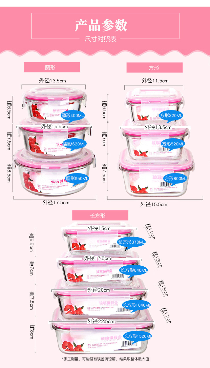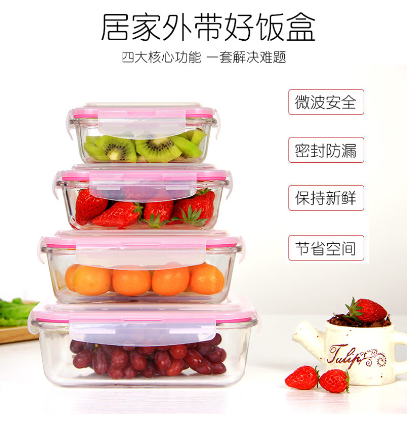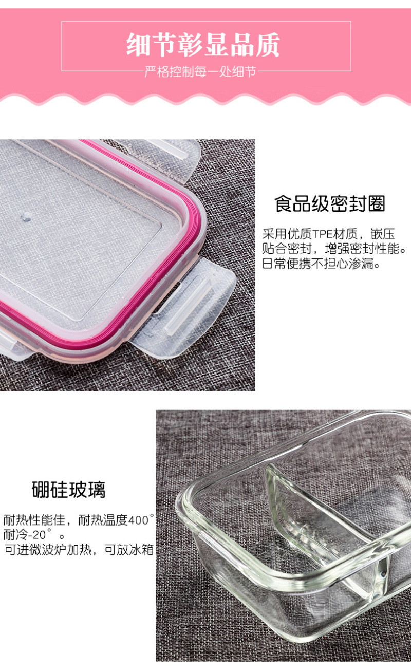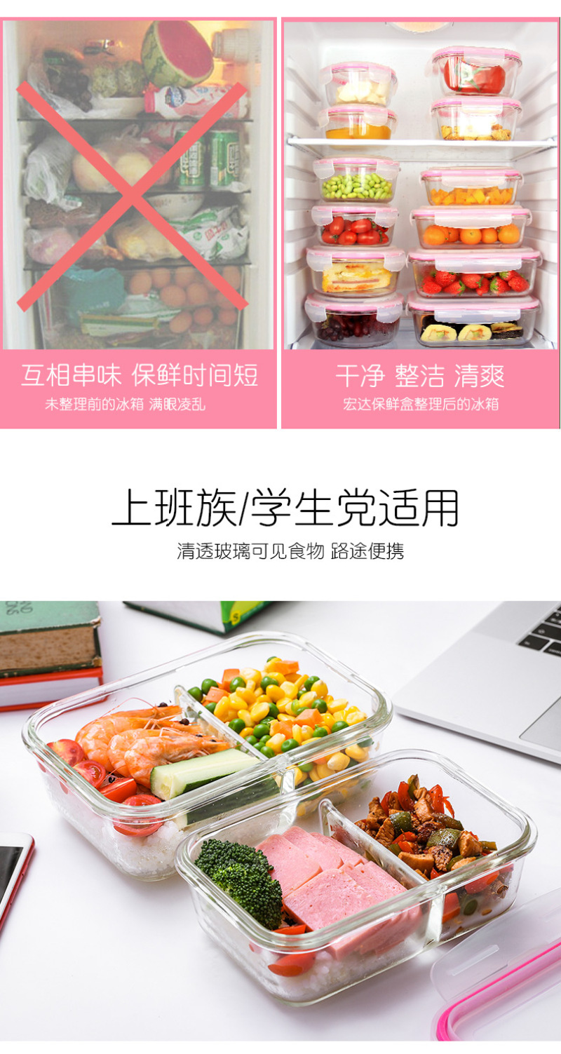 玻璃保鲜盒耐热分隔饭盒微波炉密封沙拉碗密封防漏 长久保鲜