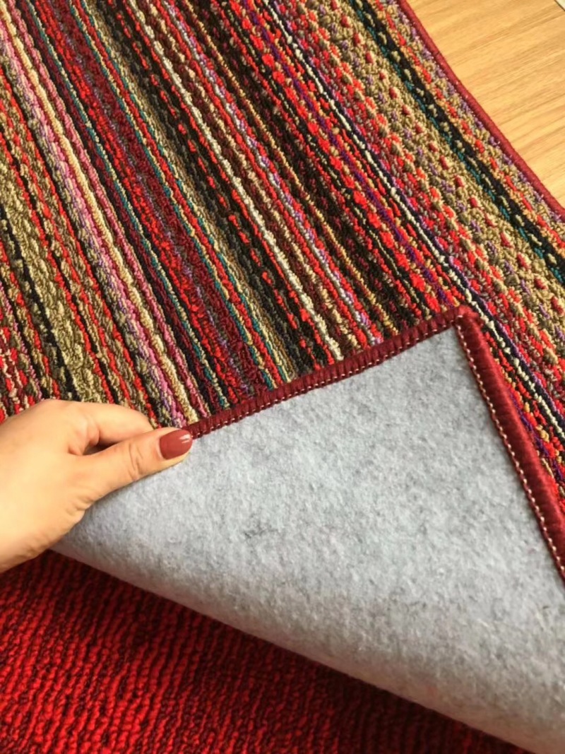 跨境出口清新家用满铺地毯 商用办公室客厅卧室楼梯床边 防滑米色条纹地毯