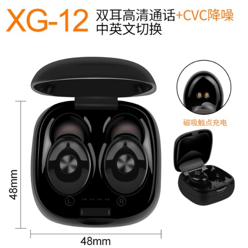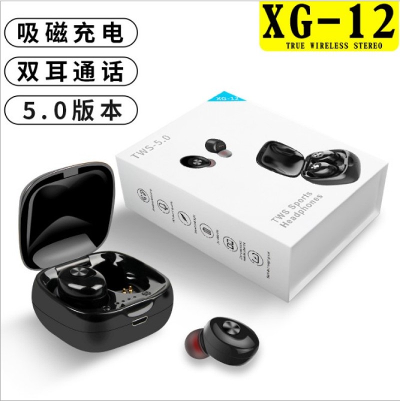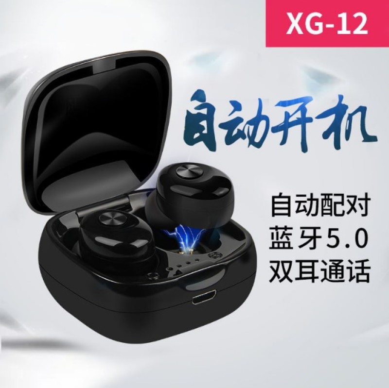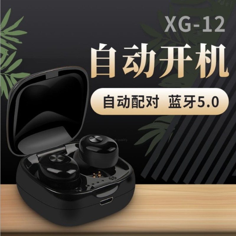 新款XG-12无线蓝牙耳机5.0双耳TWS立体声mini隐形运动式带充电仓