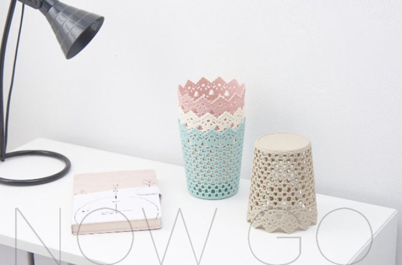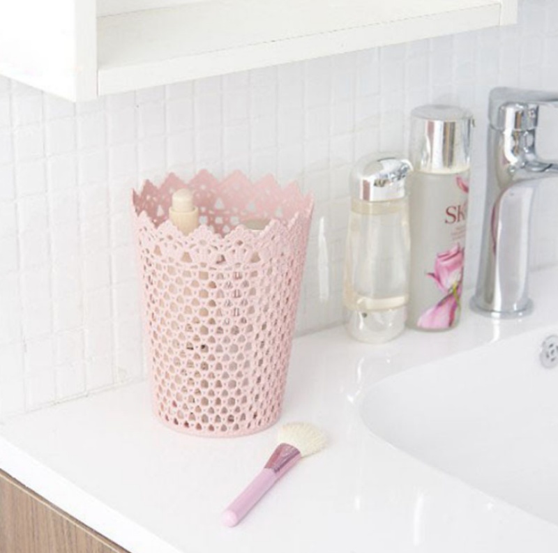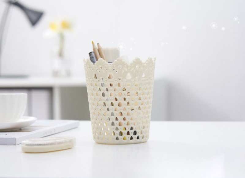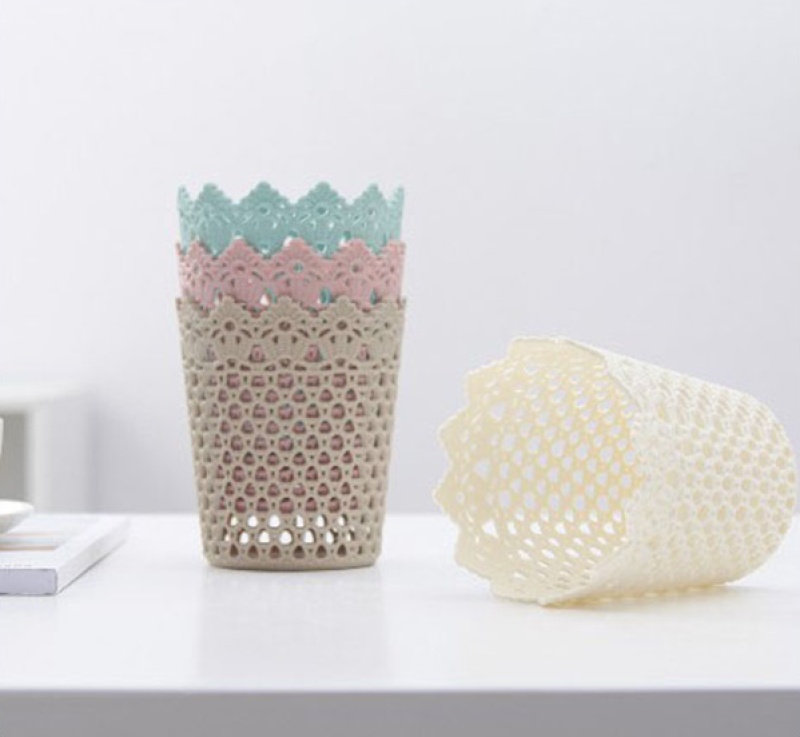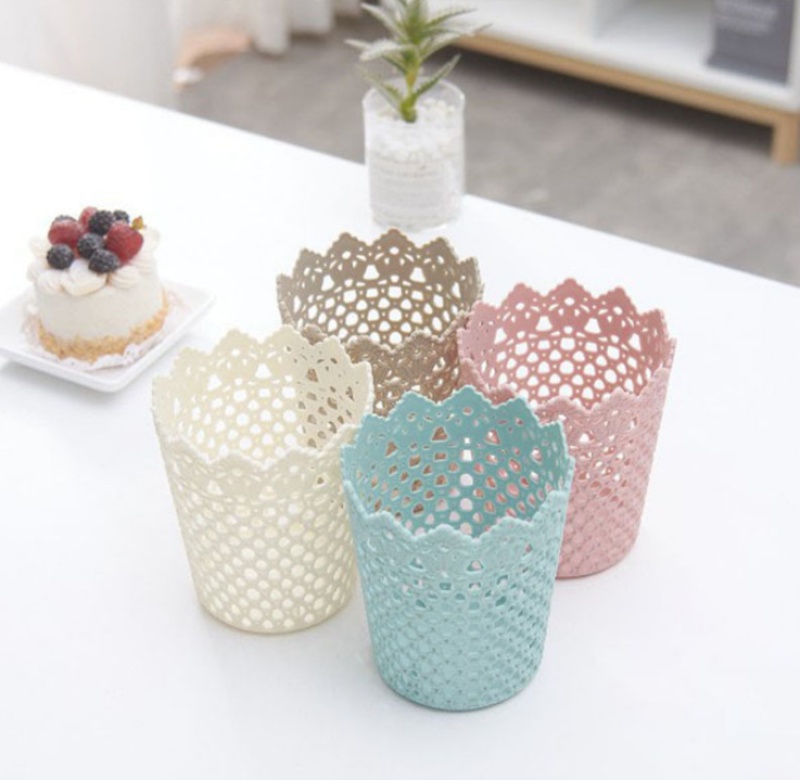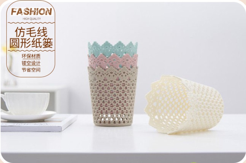 新款桌面收纳篮 创意办公文具收纳 圆形镂空塑料收纳筐
