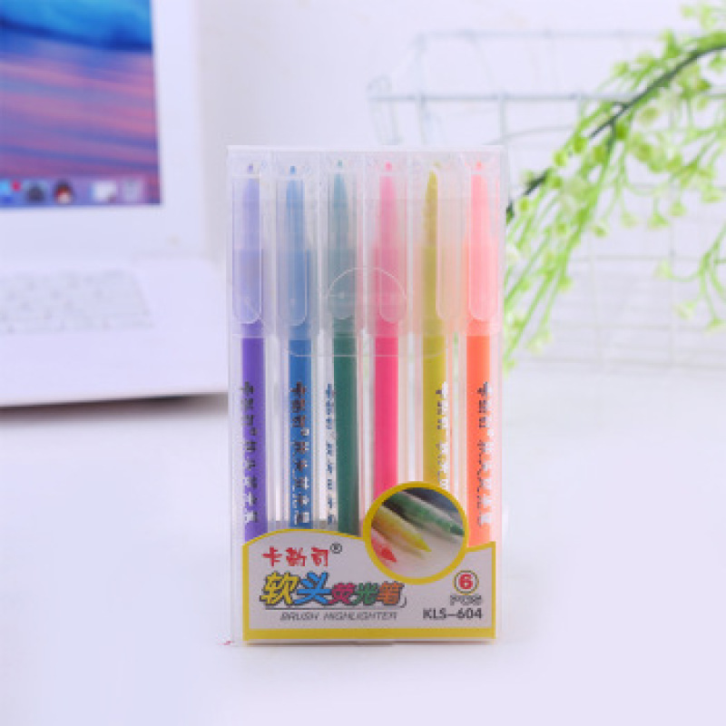 软头荧光笔 彩色划重点记号笔6色标记笔