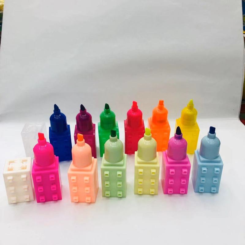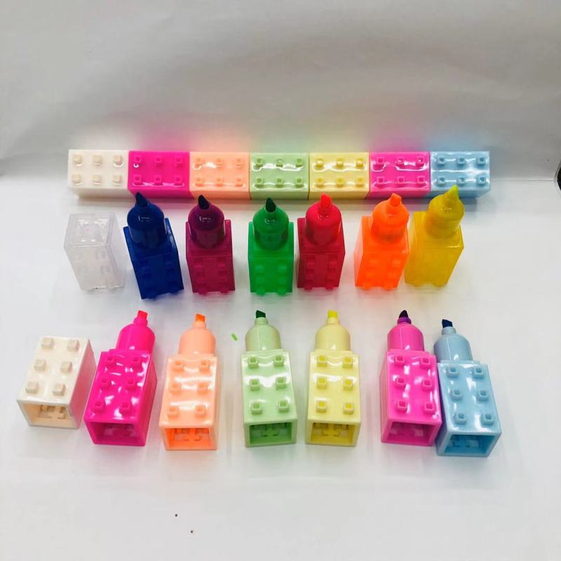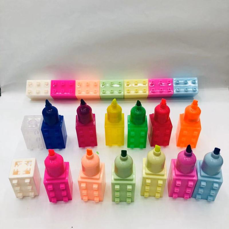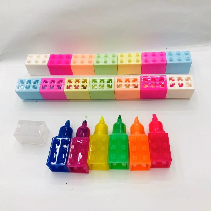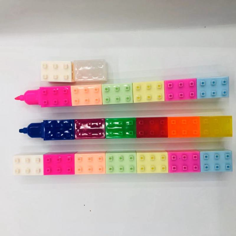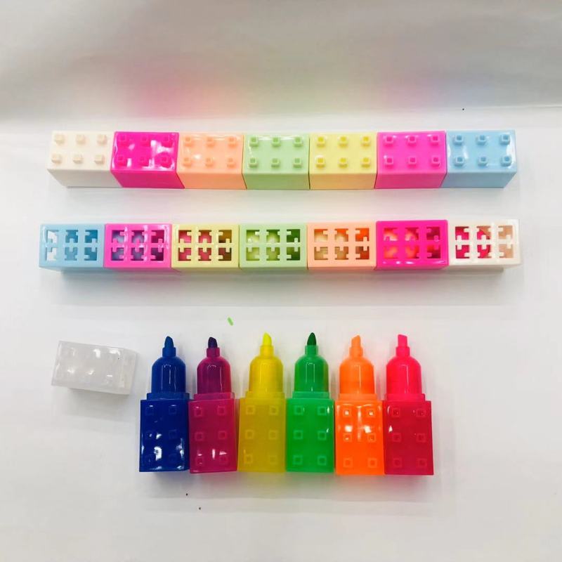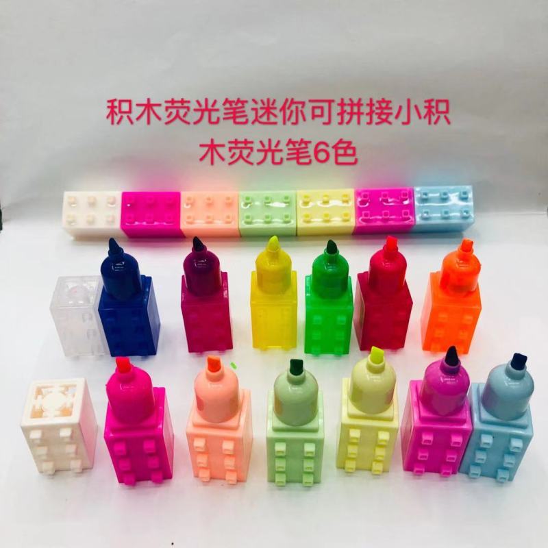 积木荧光笔 多节迷你可自由拼接小积木荧光笔6色