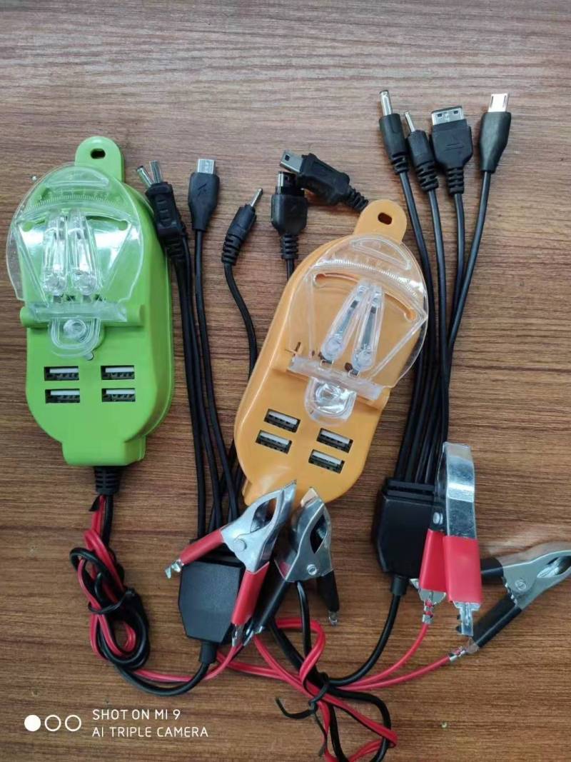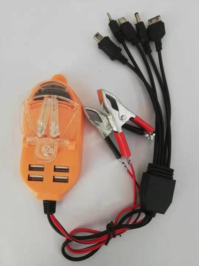 电动车电瓶手机充电器 蓄电瓶鳄鱼夹子万能充电器4USB夹子万能充
