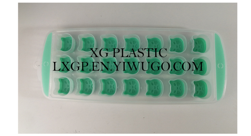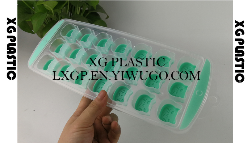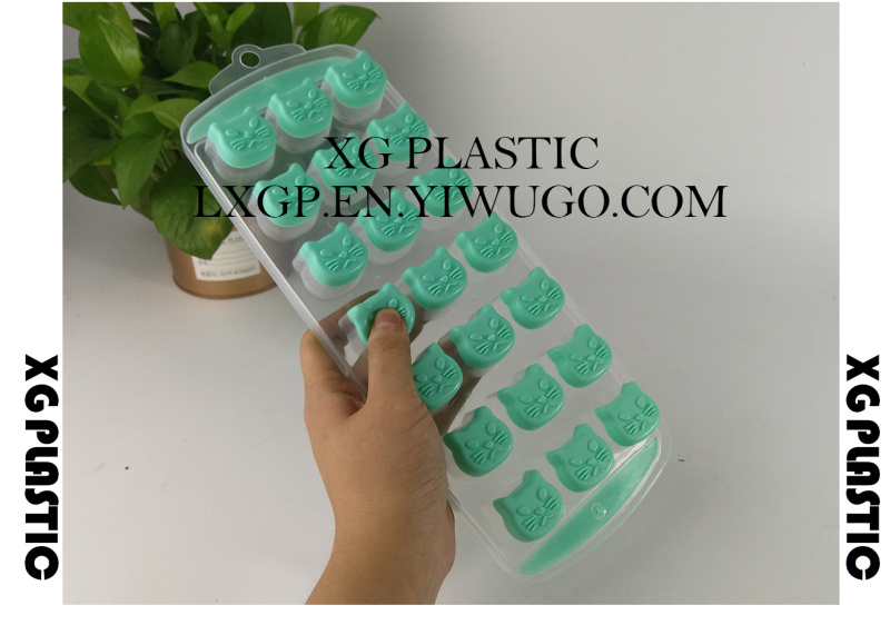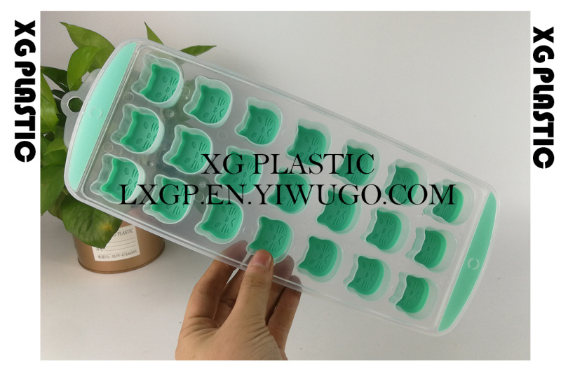 可爱冰格冰模塑料硅胶21格喵咪冰块制作模具家用制冰盒冰块模具