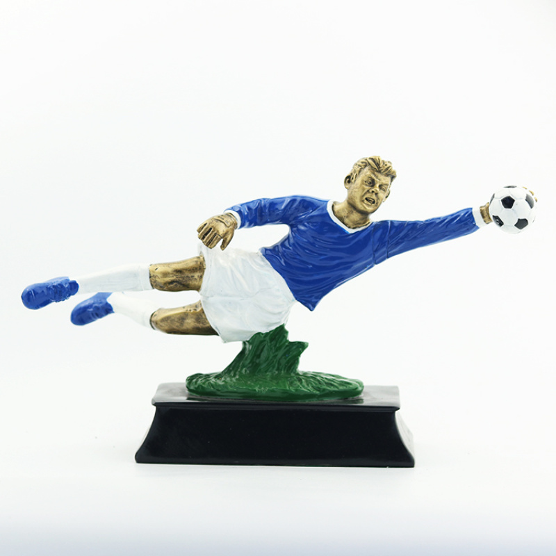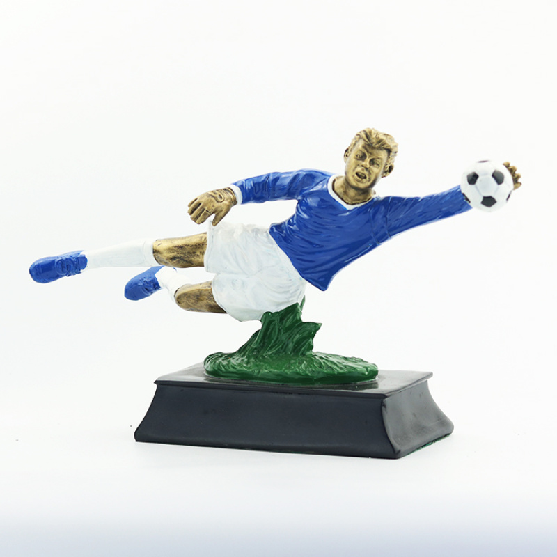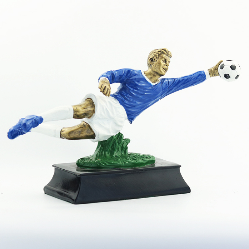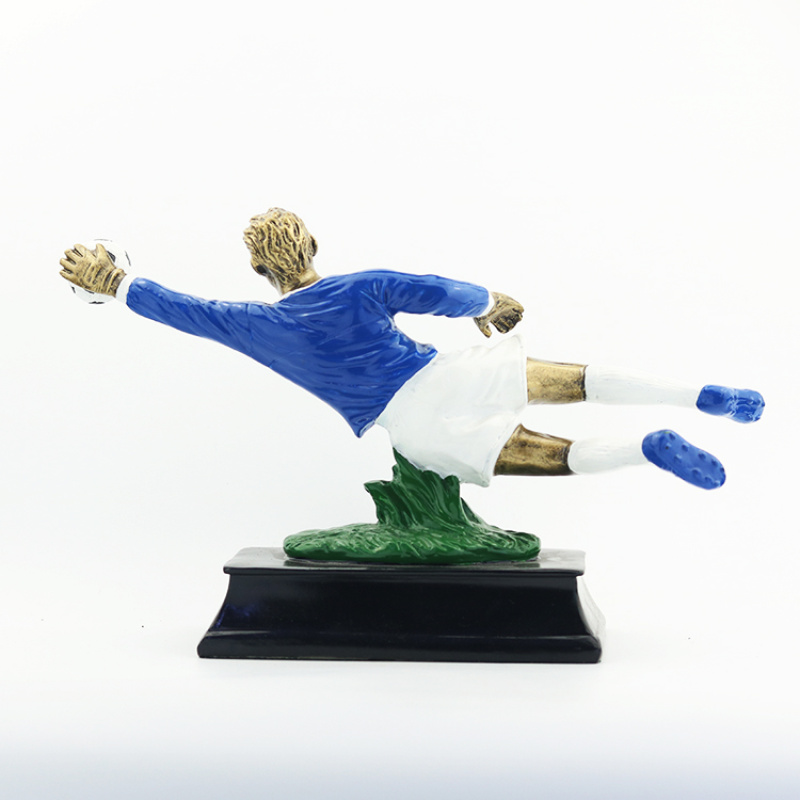 手工制作 树脂工艺品 守门员横躺截球造型足球奖杯 厂家定做3207