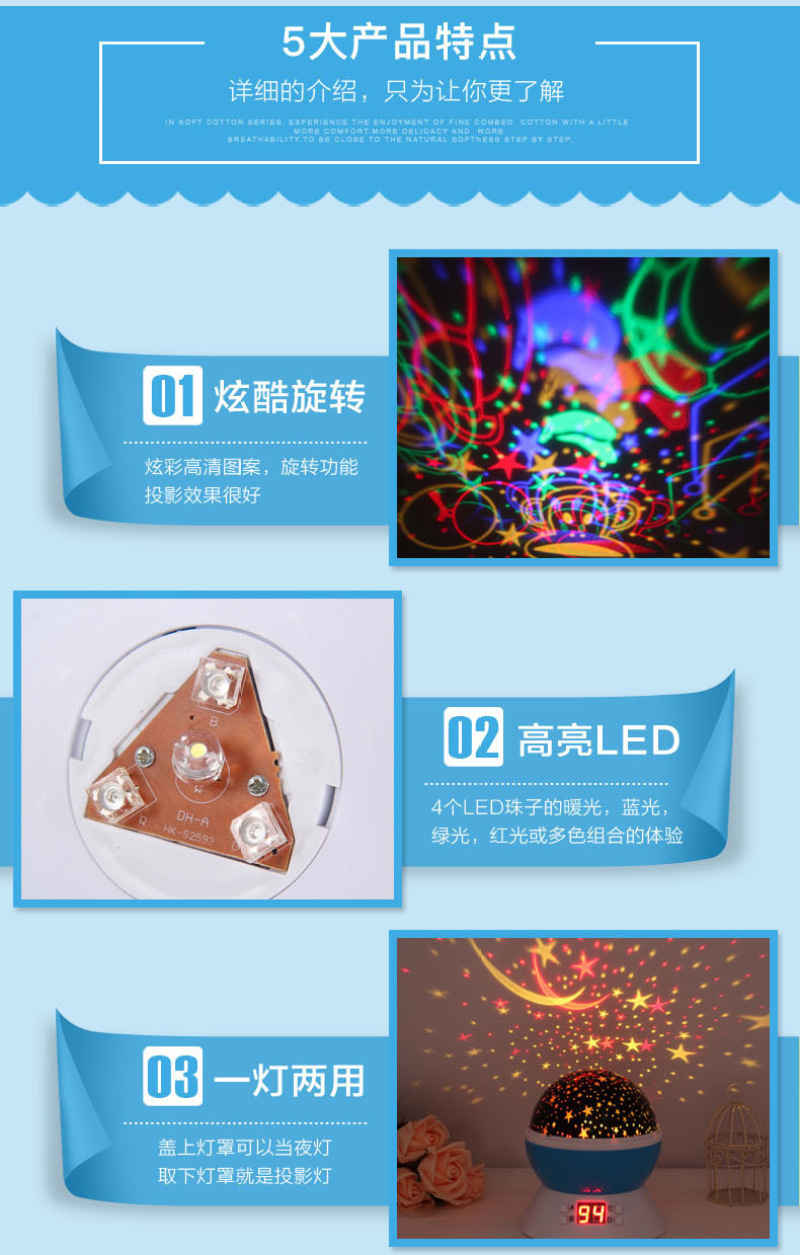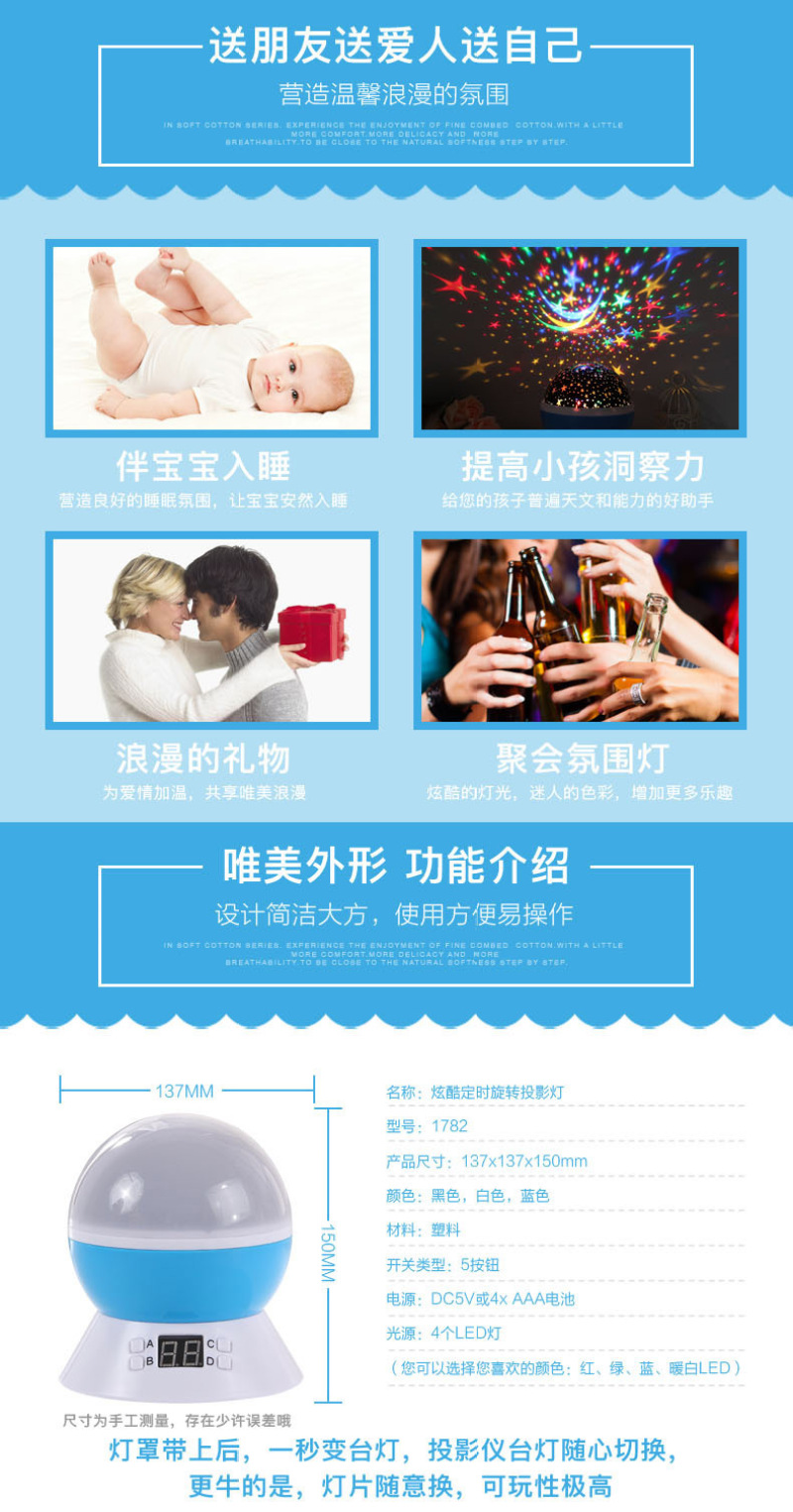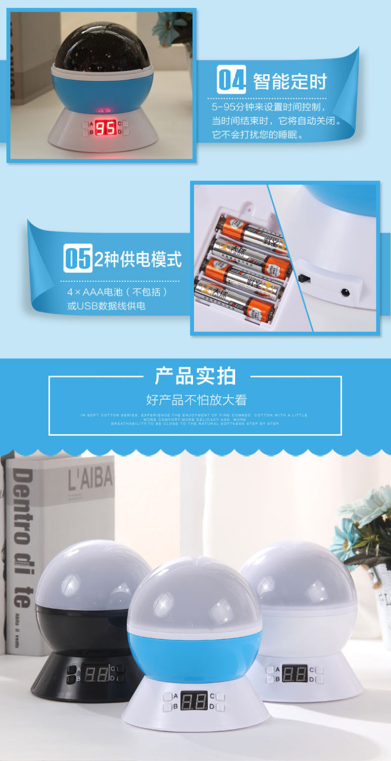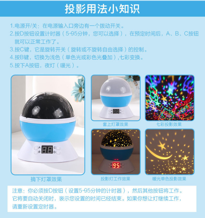 星空投影灯旋转浪漫七彩球形氛围小夜灯定时款投影灯
