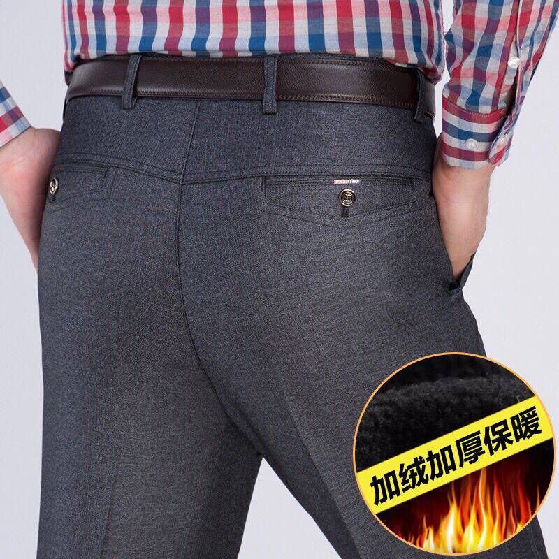 爸爸裤子秋冬季男装加绒加厚西裤宽松中老年人男士休闲裤中年男裤