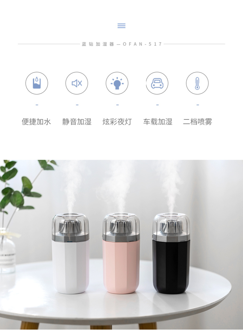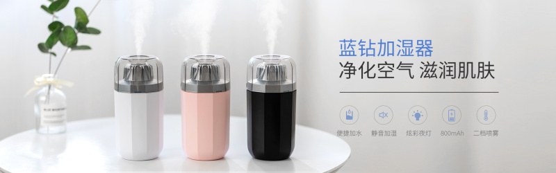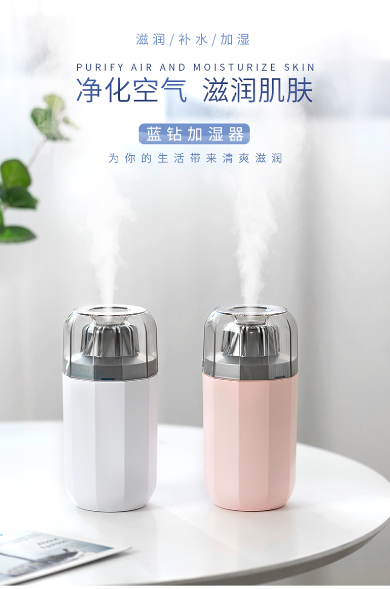 蓝钻加湿器 LED灯 车载室内空气净化补水保湿 香薰 礼品定制跨境