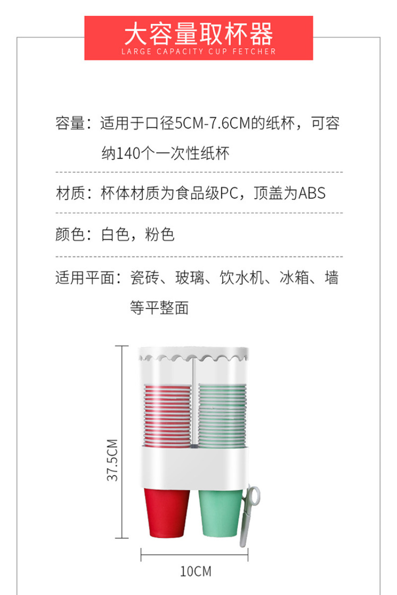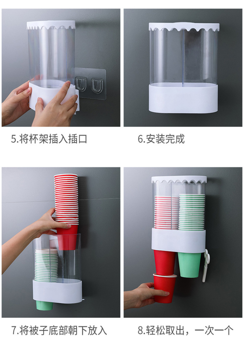 双筒饮水机一次性纸杯自动落杯架取杯器厨房客厅免打孔