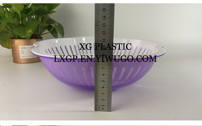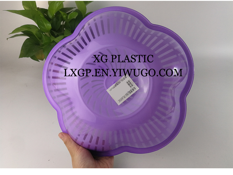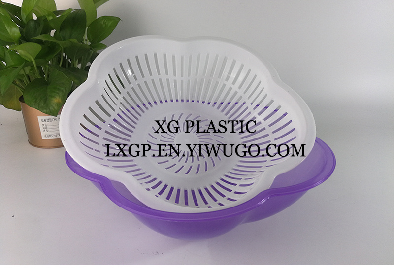 沥水篮水果篮双层果蔬收纳篮厨房客厅果盘洗菜篮时尚花型塑料篮子