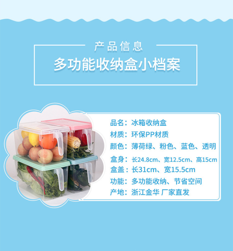 冰箱收纳盒长方形抽屉式食品冷冻盒厨房收纳保鲜塑料储物盒