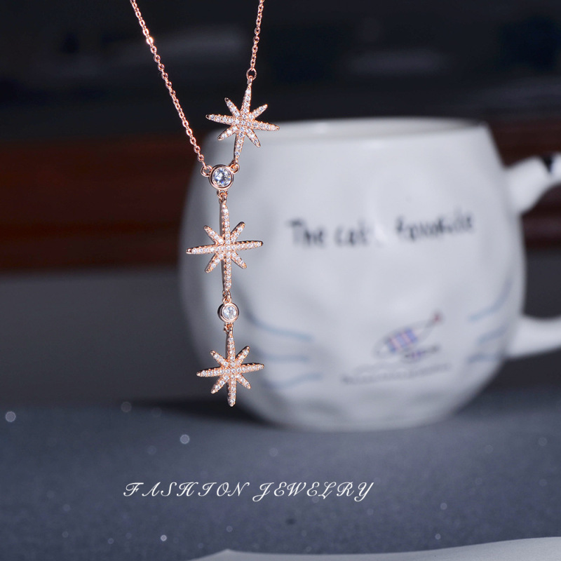 时尚潮流新款流星项链女日韩风韩国东大门抖音同款三个星星锁骨链