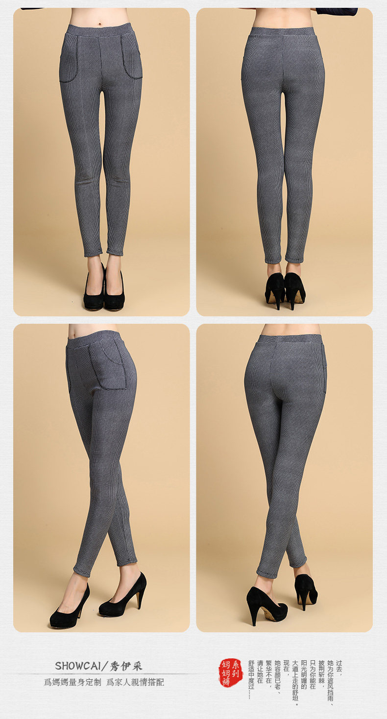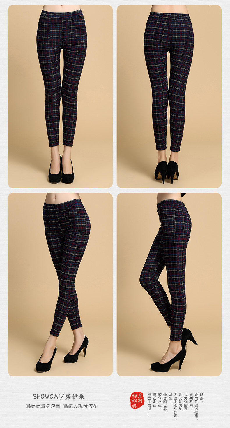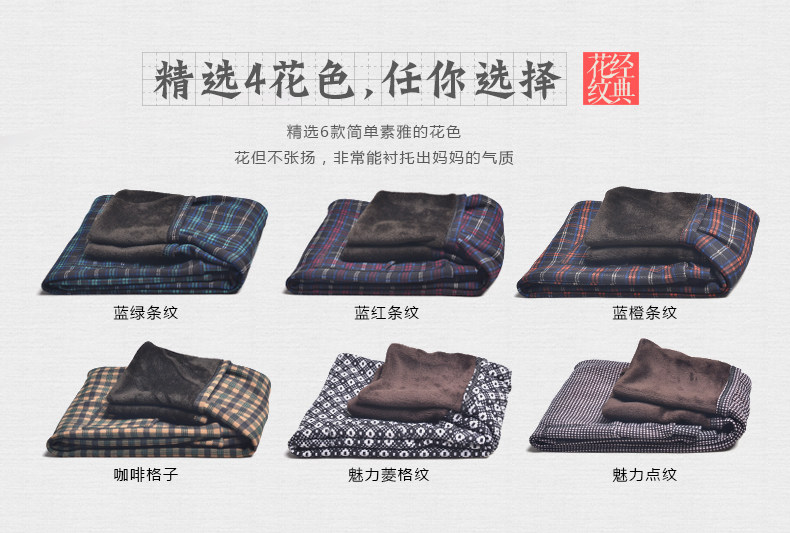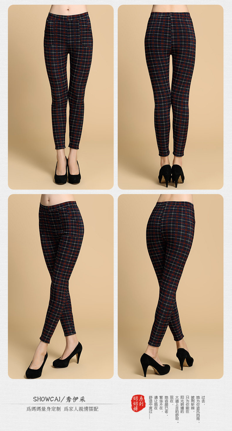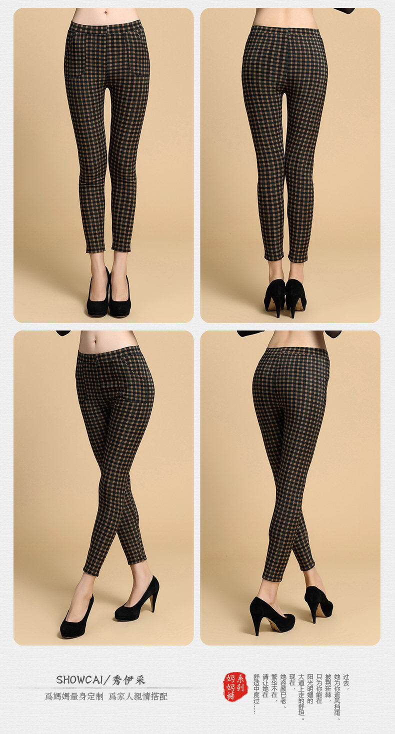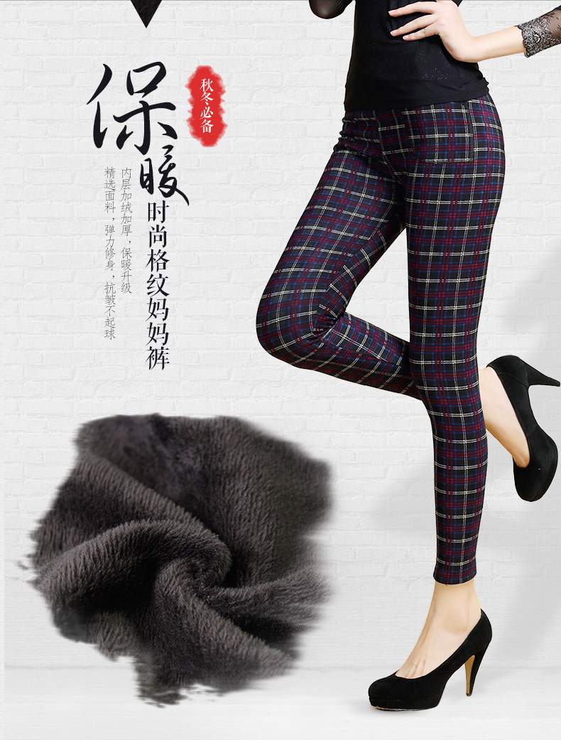 中老年女装休闲大码长裤加绒加厚格子妈妈装打底裤
