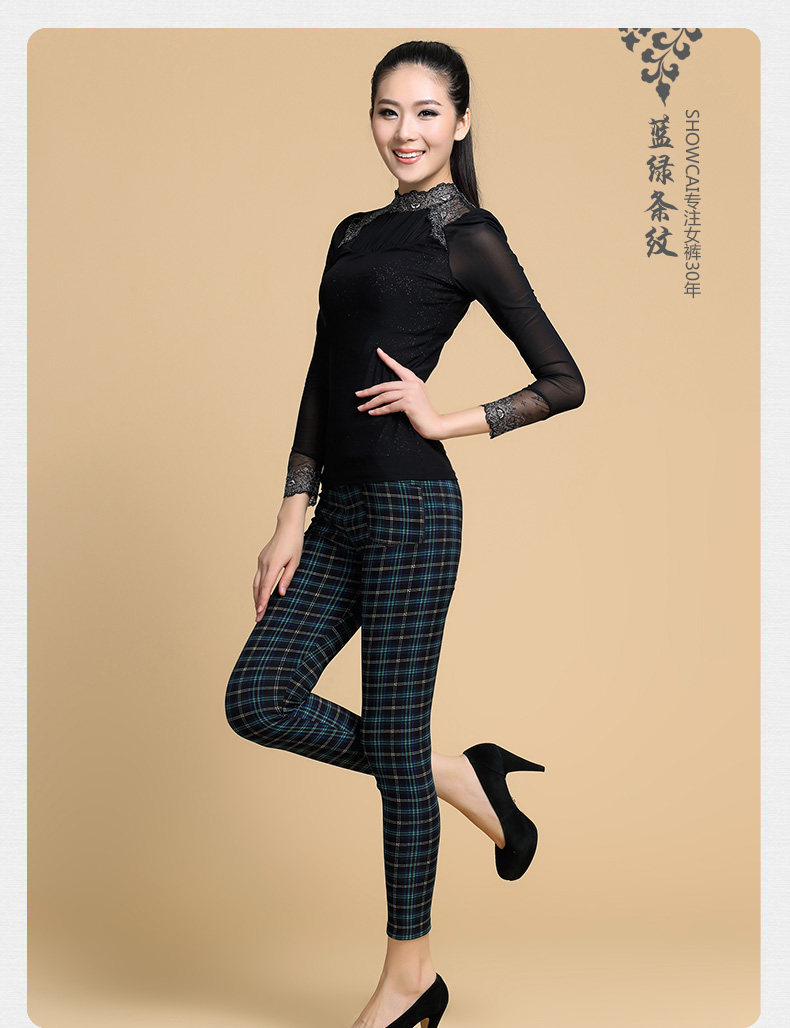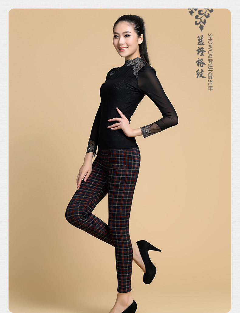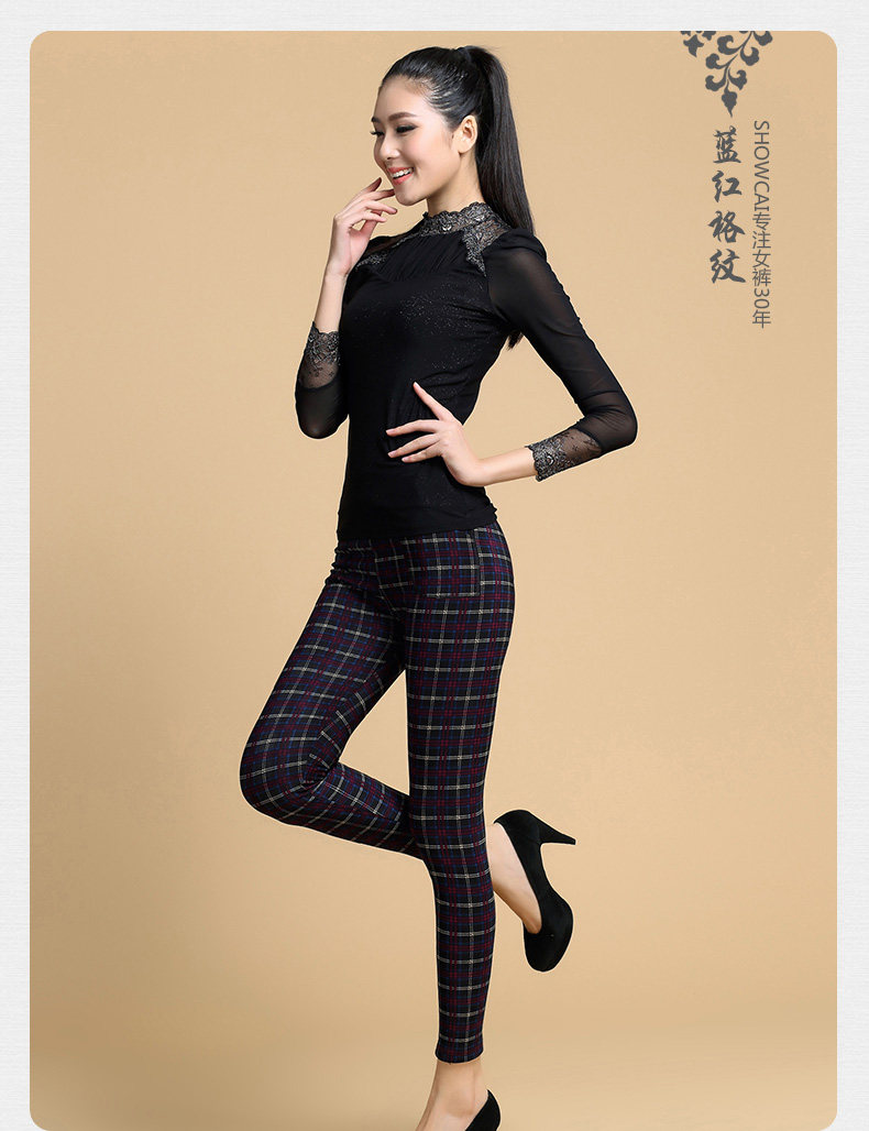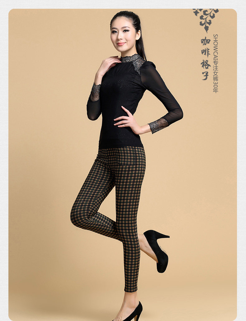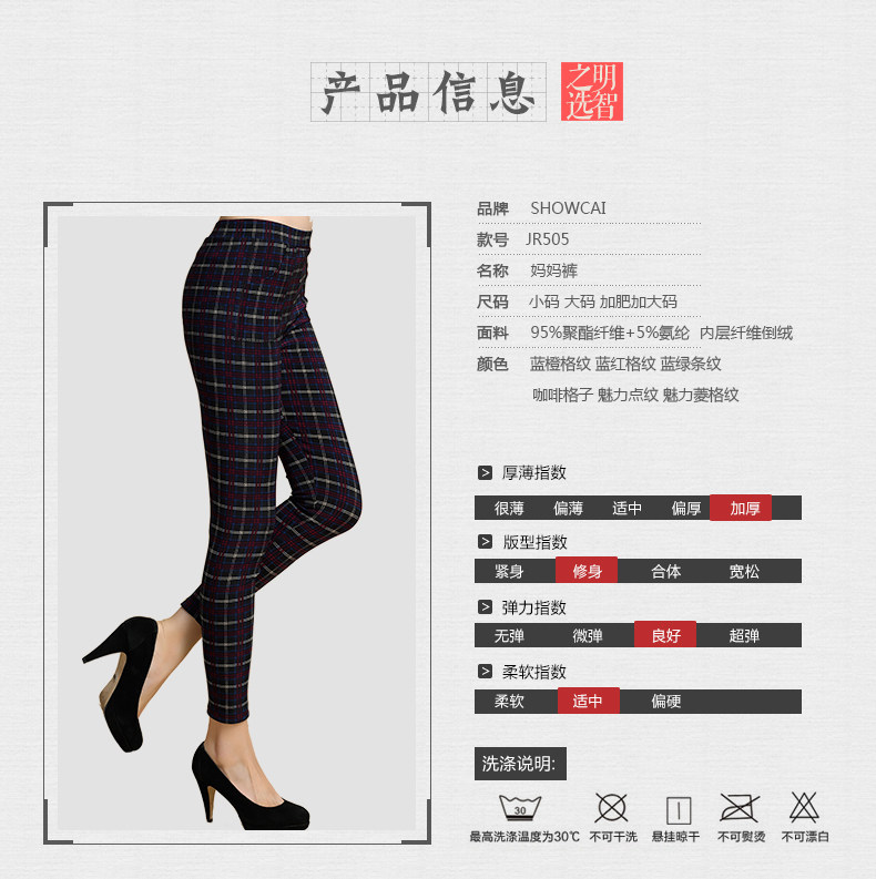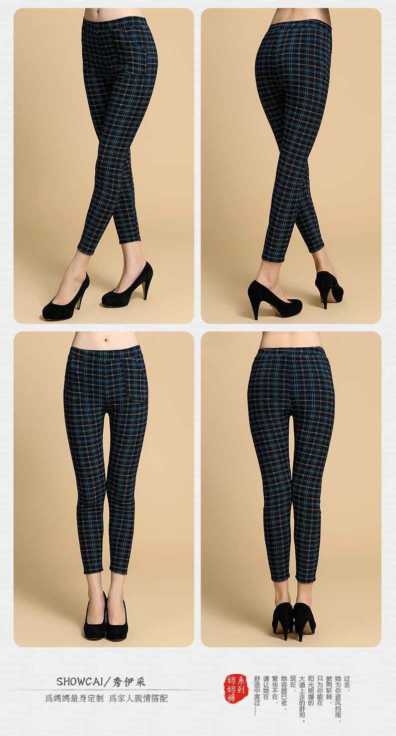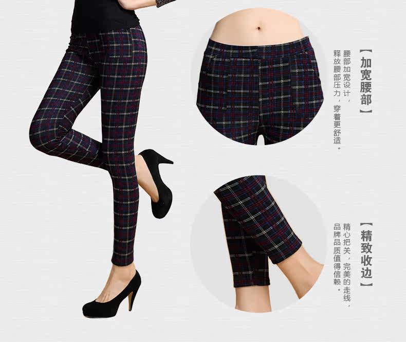 中老年女装休闲大码长裤加绒加厚格子妈妈装打底裤