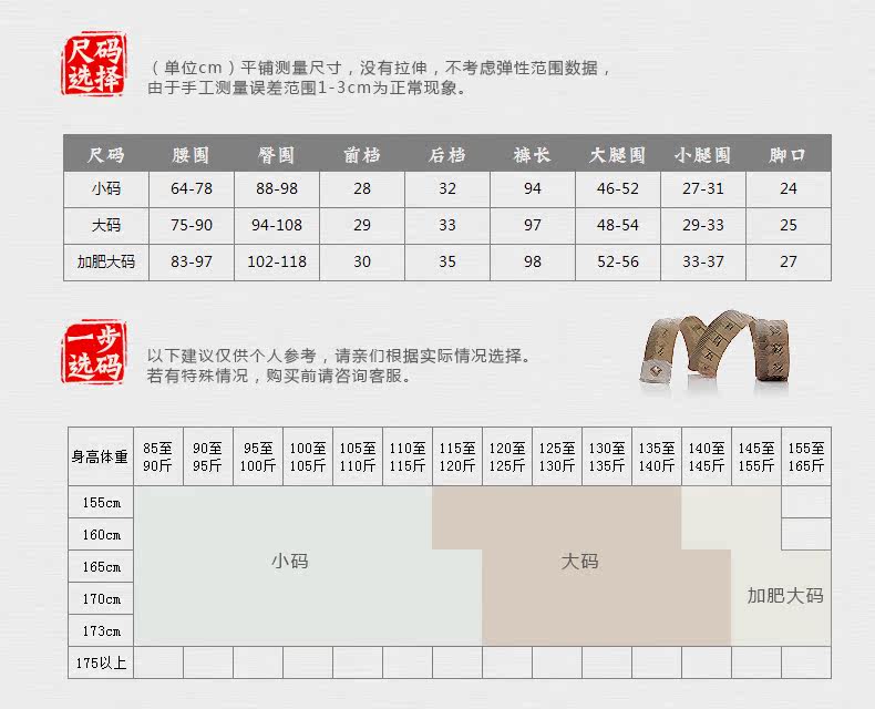 加大版:腰围80-138cm,臀围98,前浪35cm(适合3尺以下的人穿)
