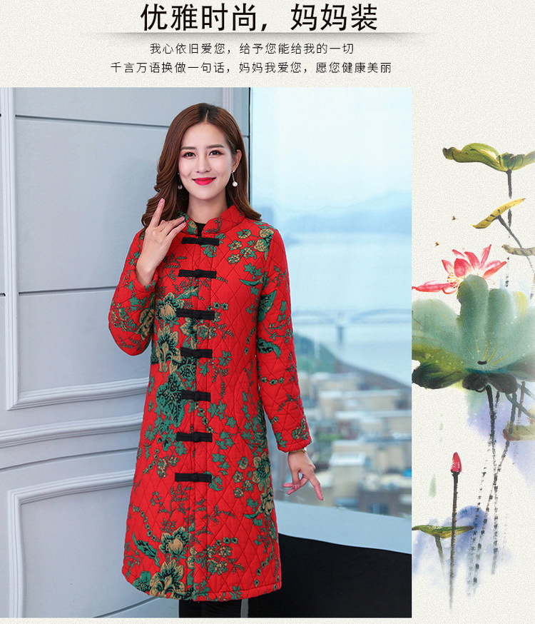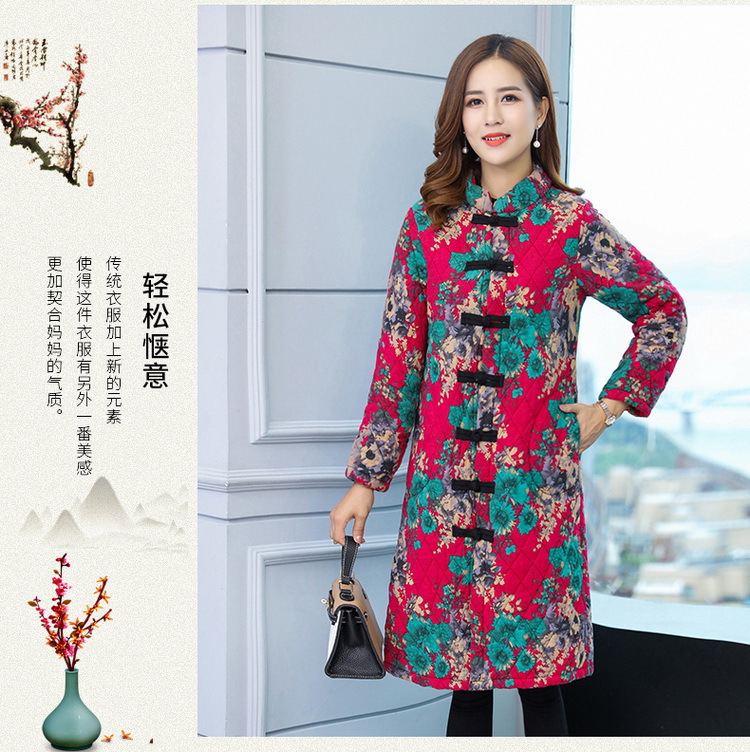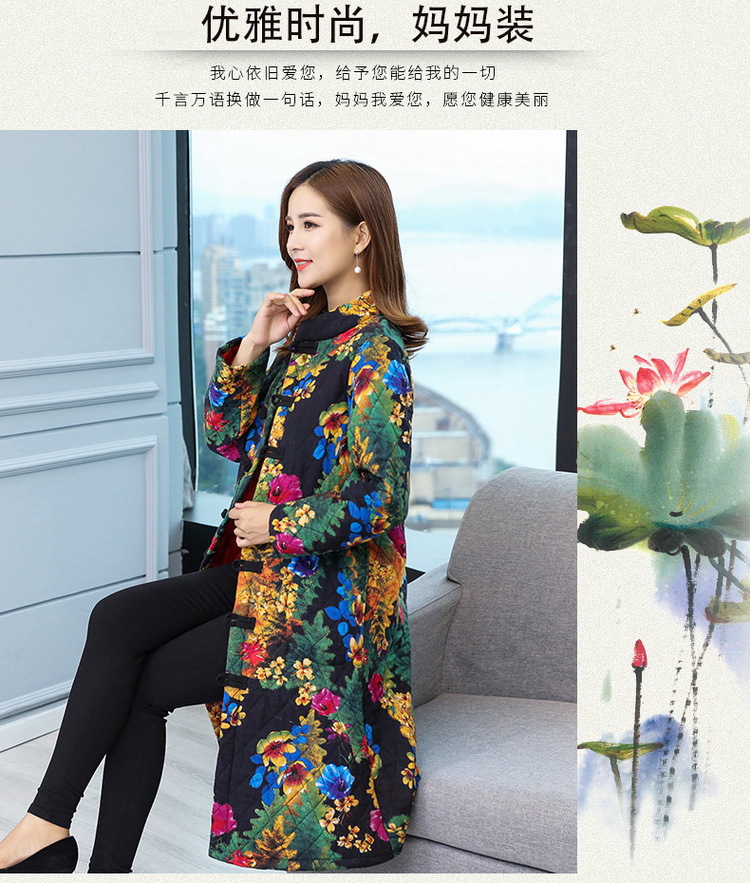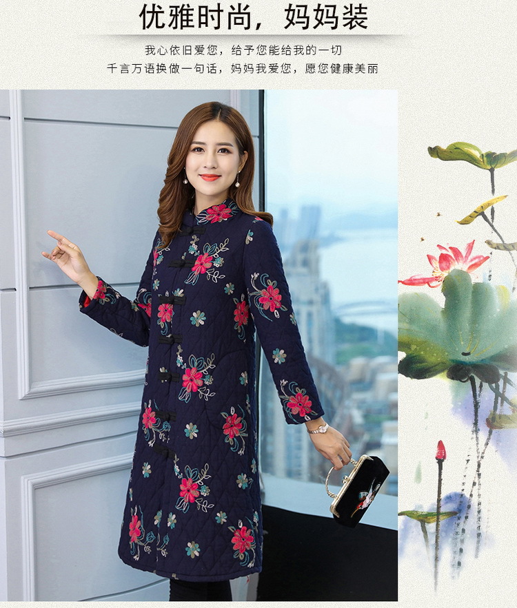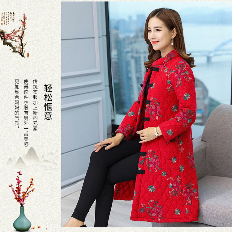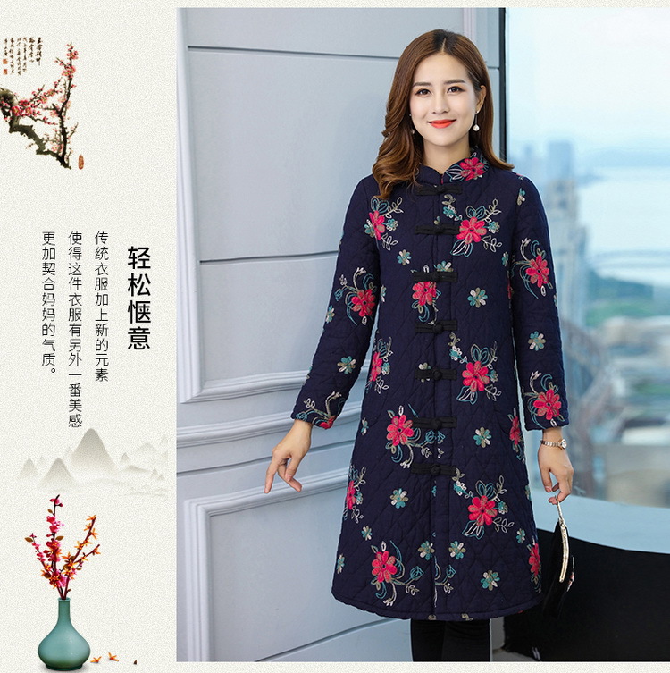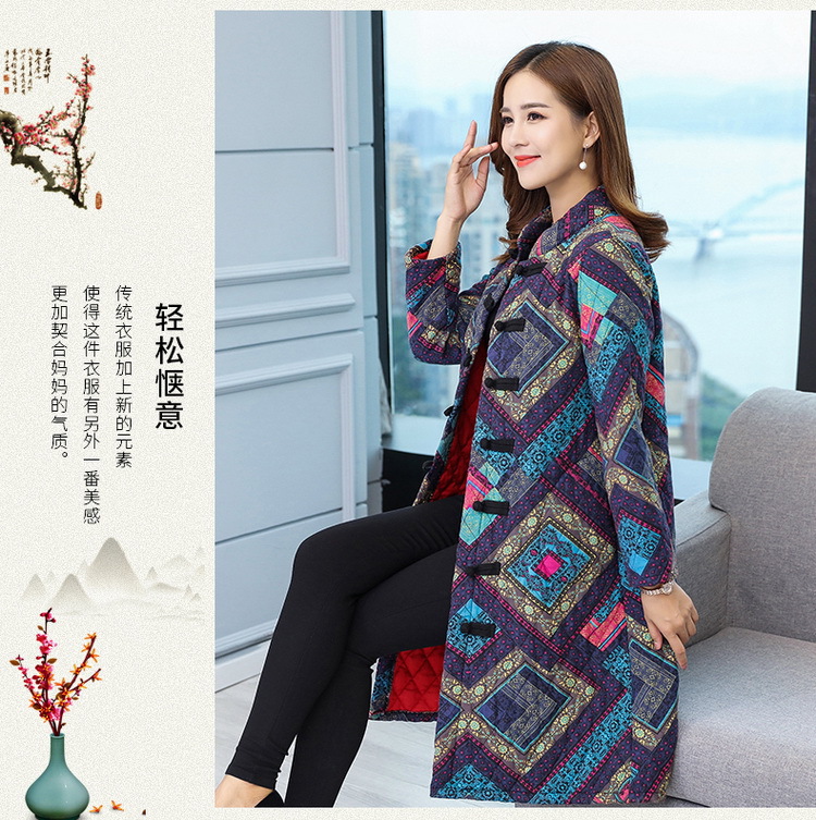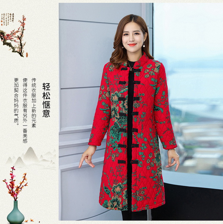 中老年人女装妈妈装棉衣秋冬季新款中长款棉袄民族风过膝棉服外套