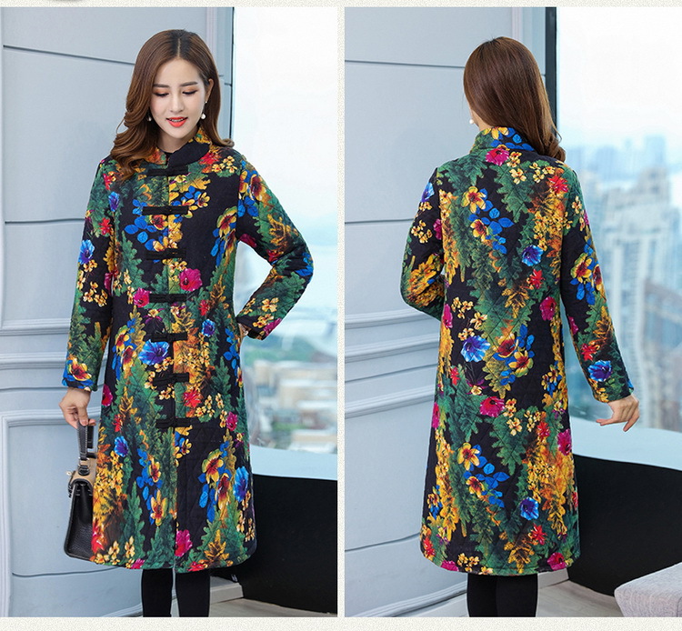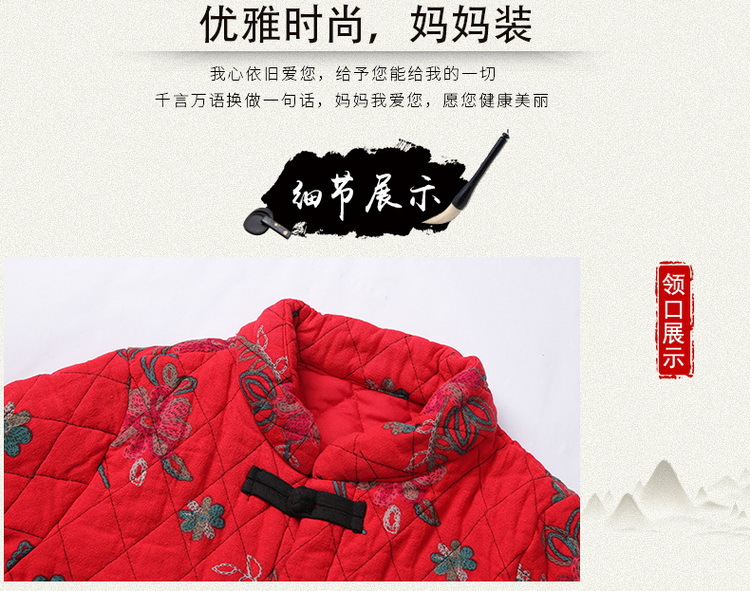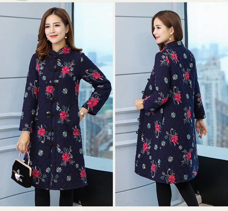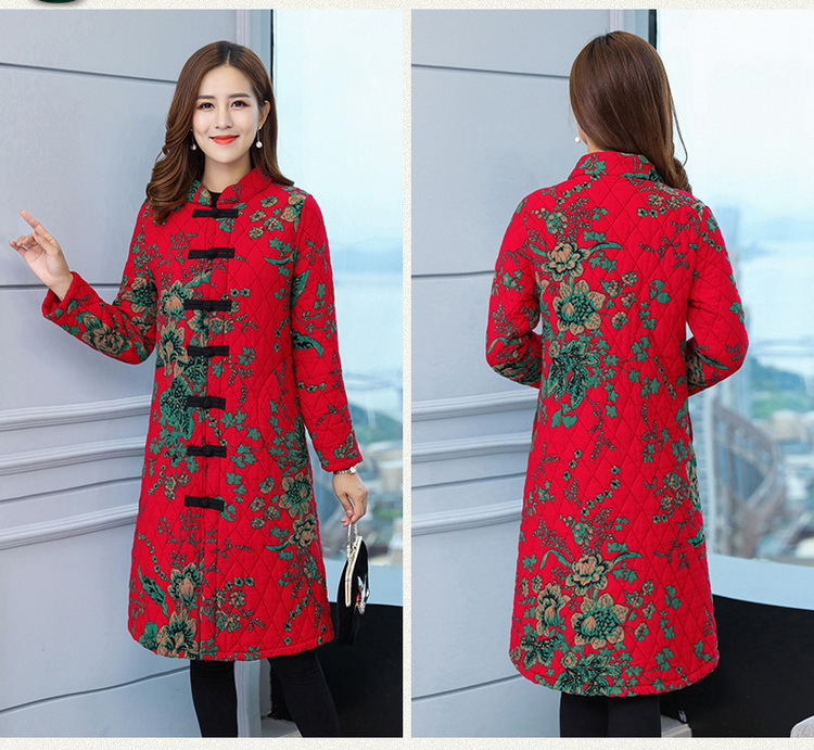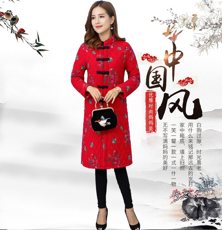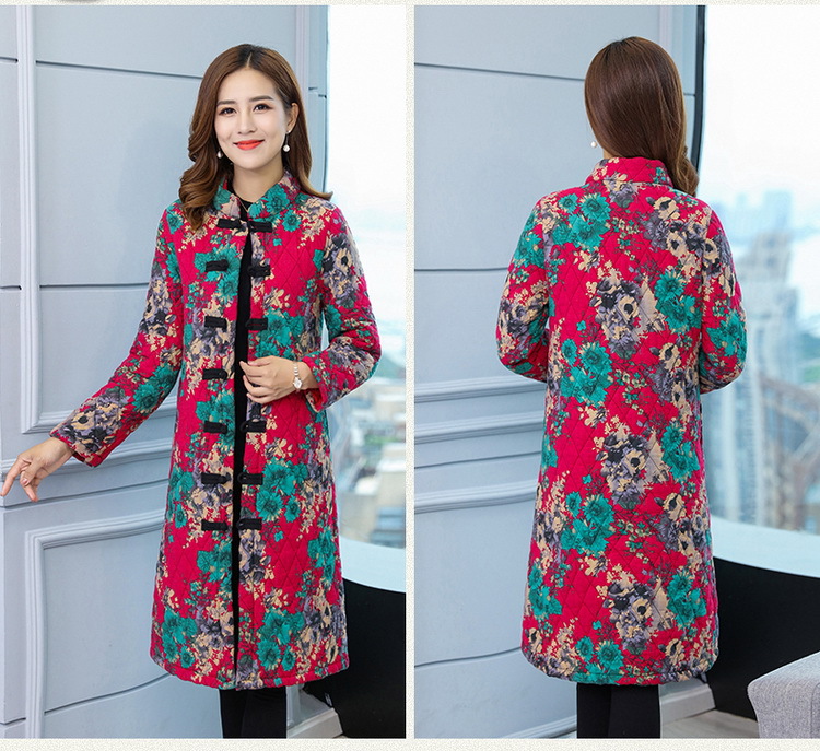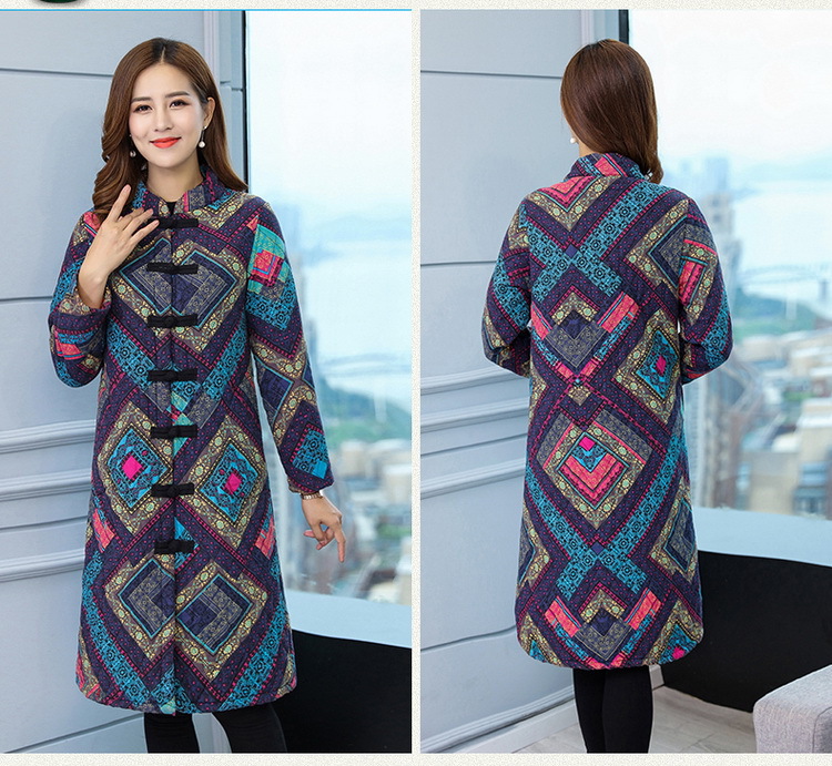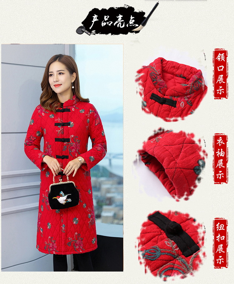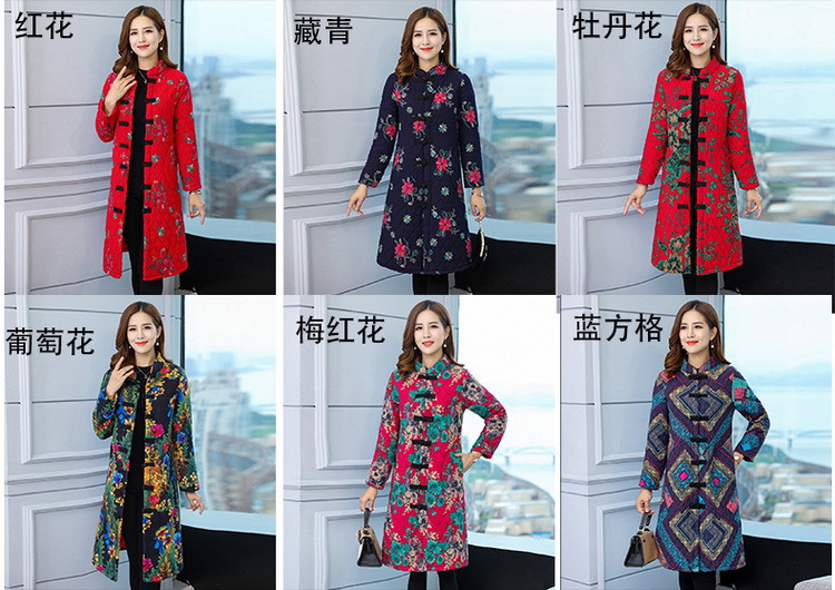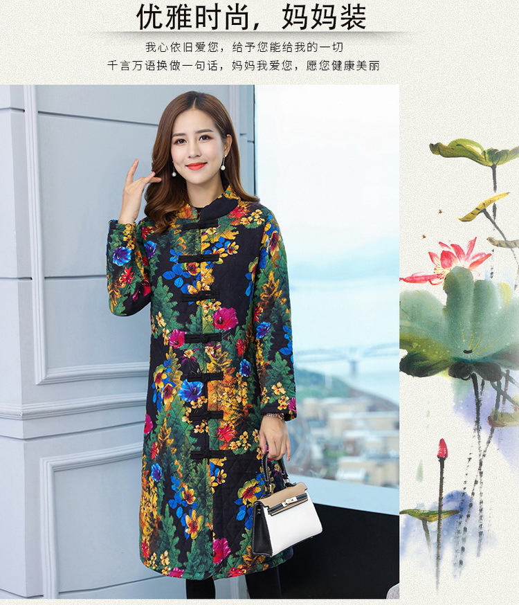 中老年人女装妈妈装棉衣秋冬季新款中长款棉袄民族风过膝棉服外套