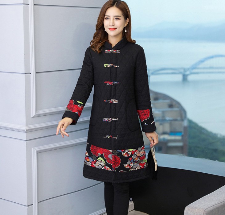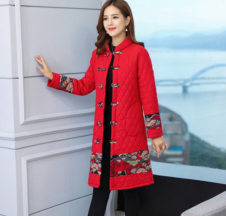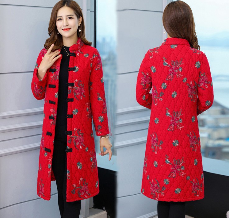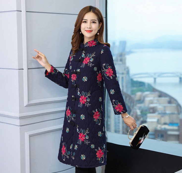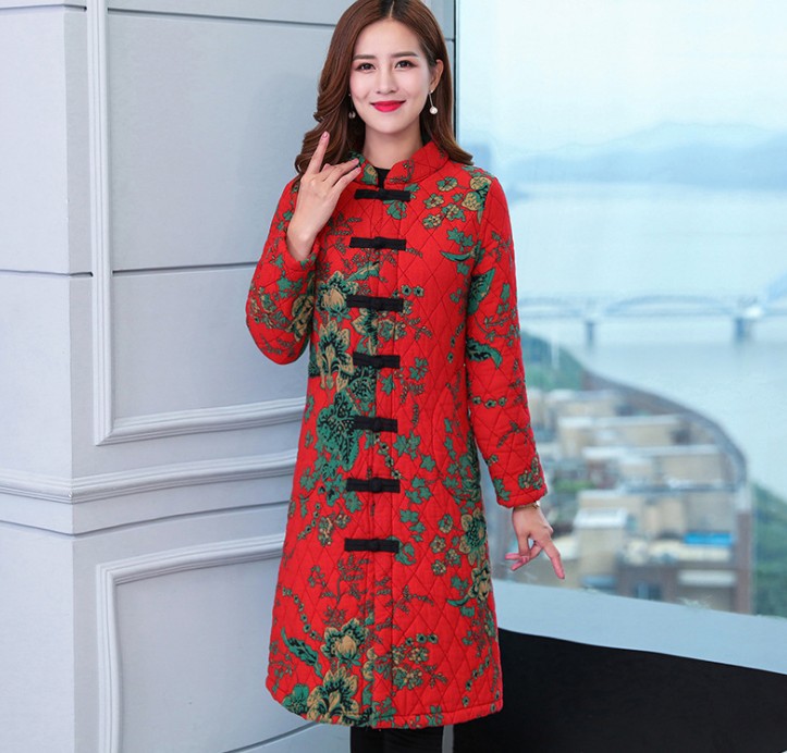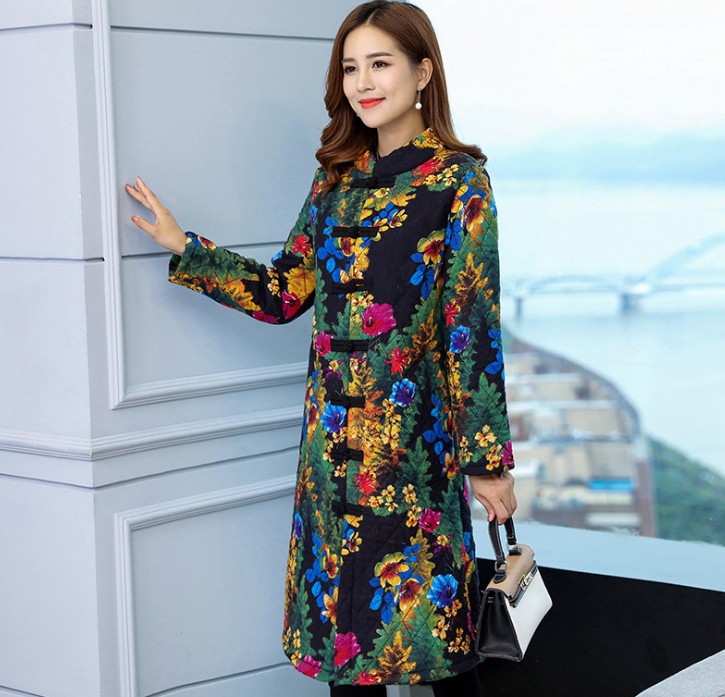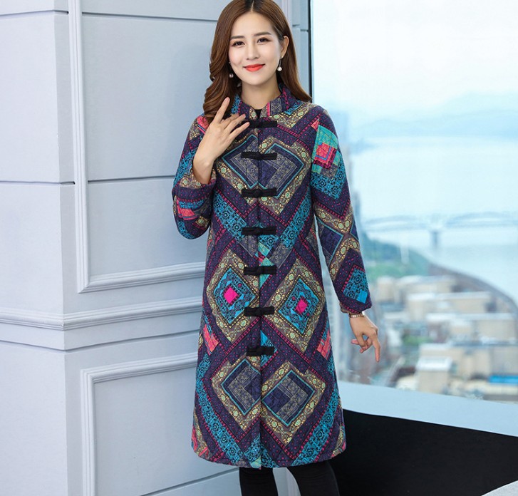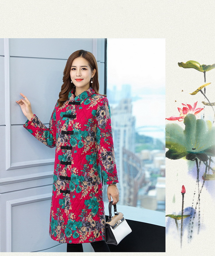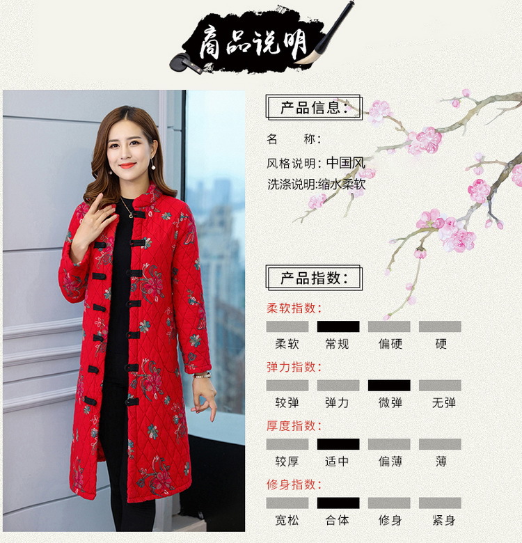 中老年人女装妈妈装棉衣秋冬季新款中长款棉袄民族风过膝棉服外套