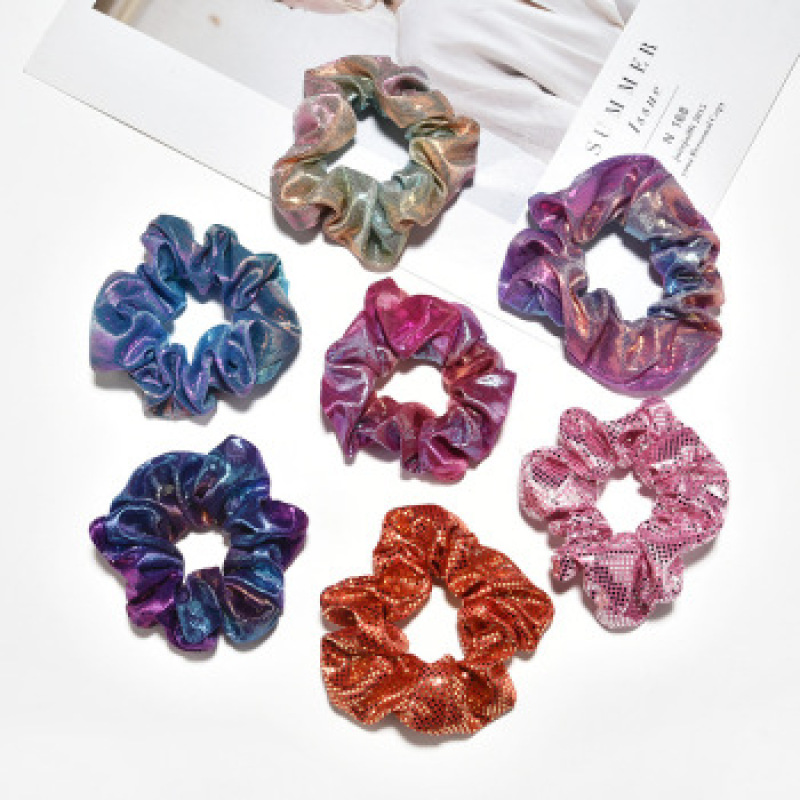 欧美跨境货源 头绳Scrunchies金属彩虹发圈 烫金双色大肠圈头花