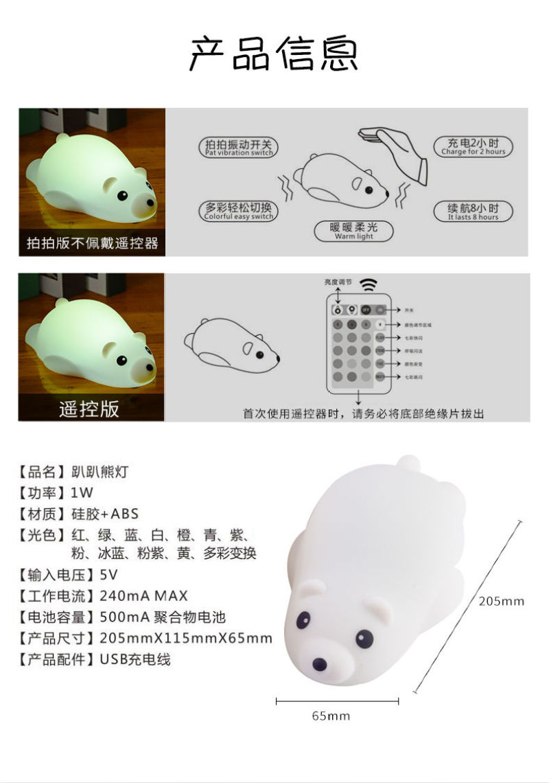 拍拍灯小夜灯床头灯趴趴熊拍拍熊创意礼品灯气氛灯小孩玩具灯可爱