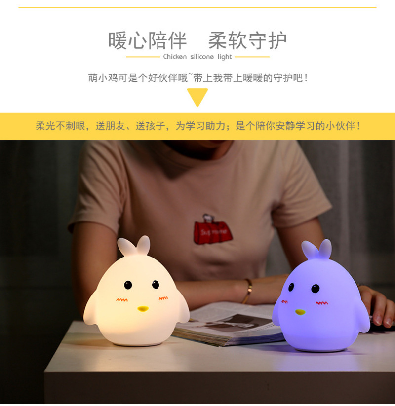 夜灯充电萌小鸡硅胶灯新款创意礼品氛围台灯拍拍减压萌宠灯