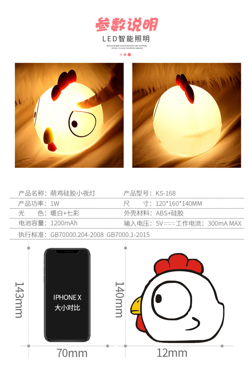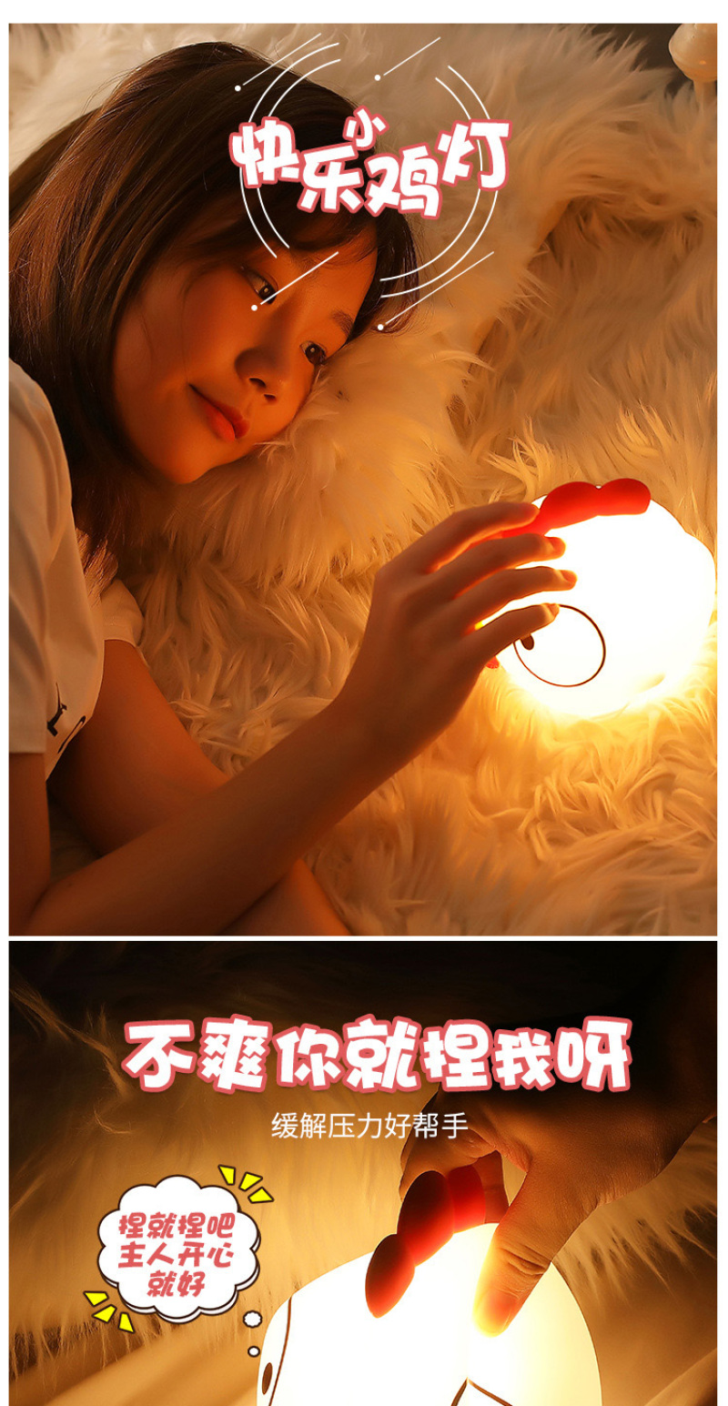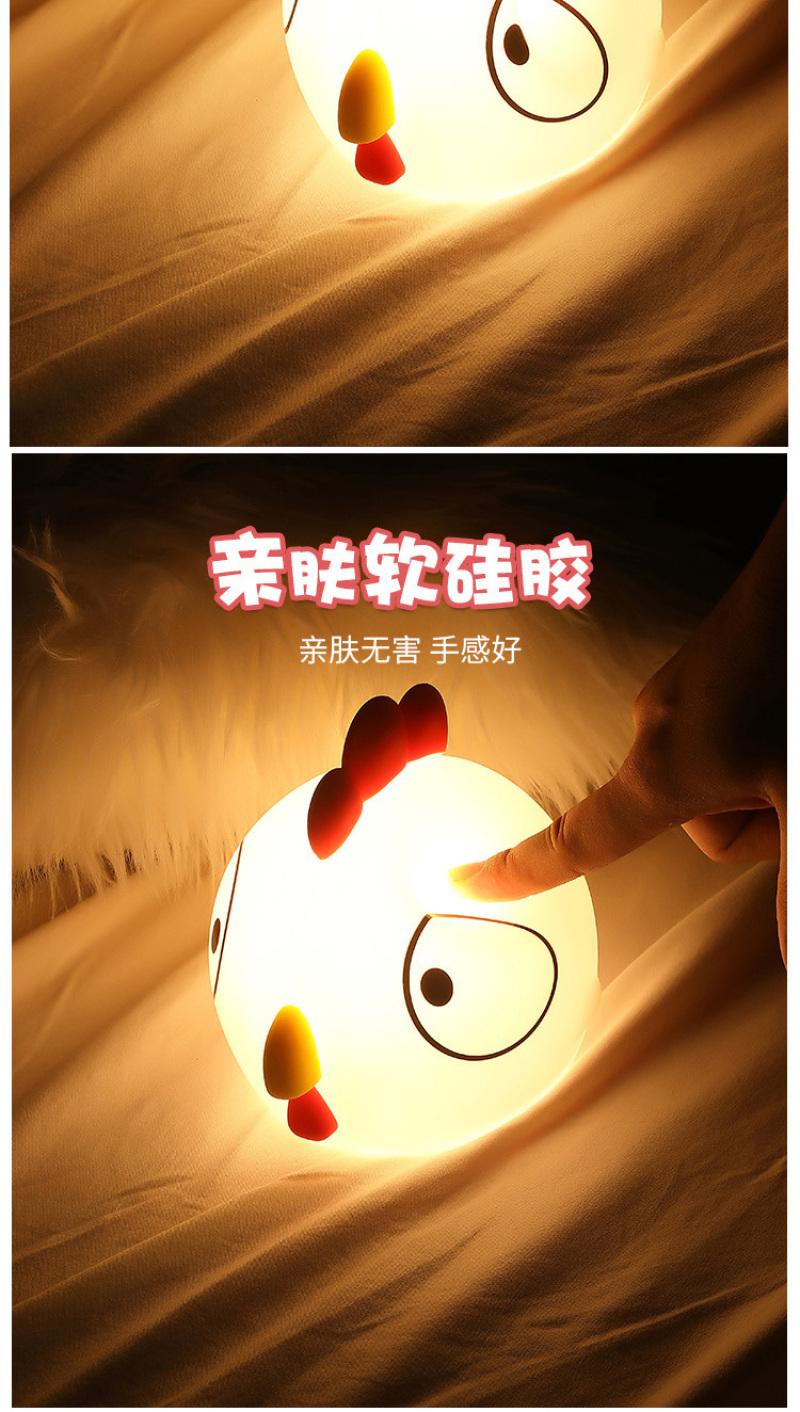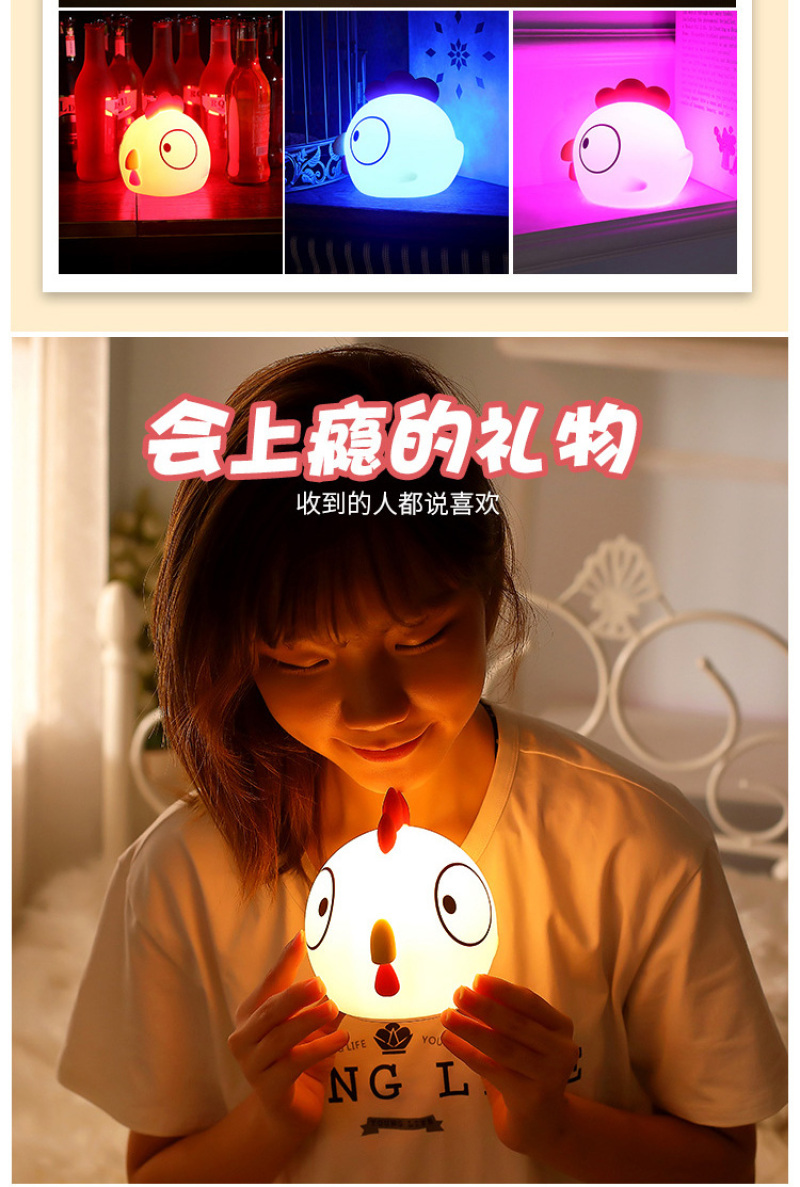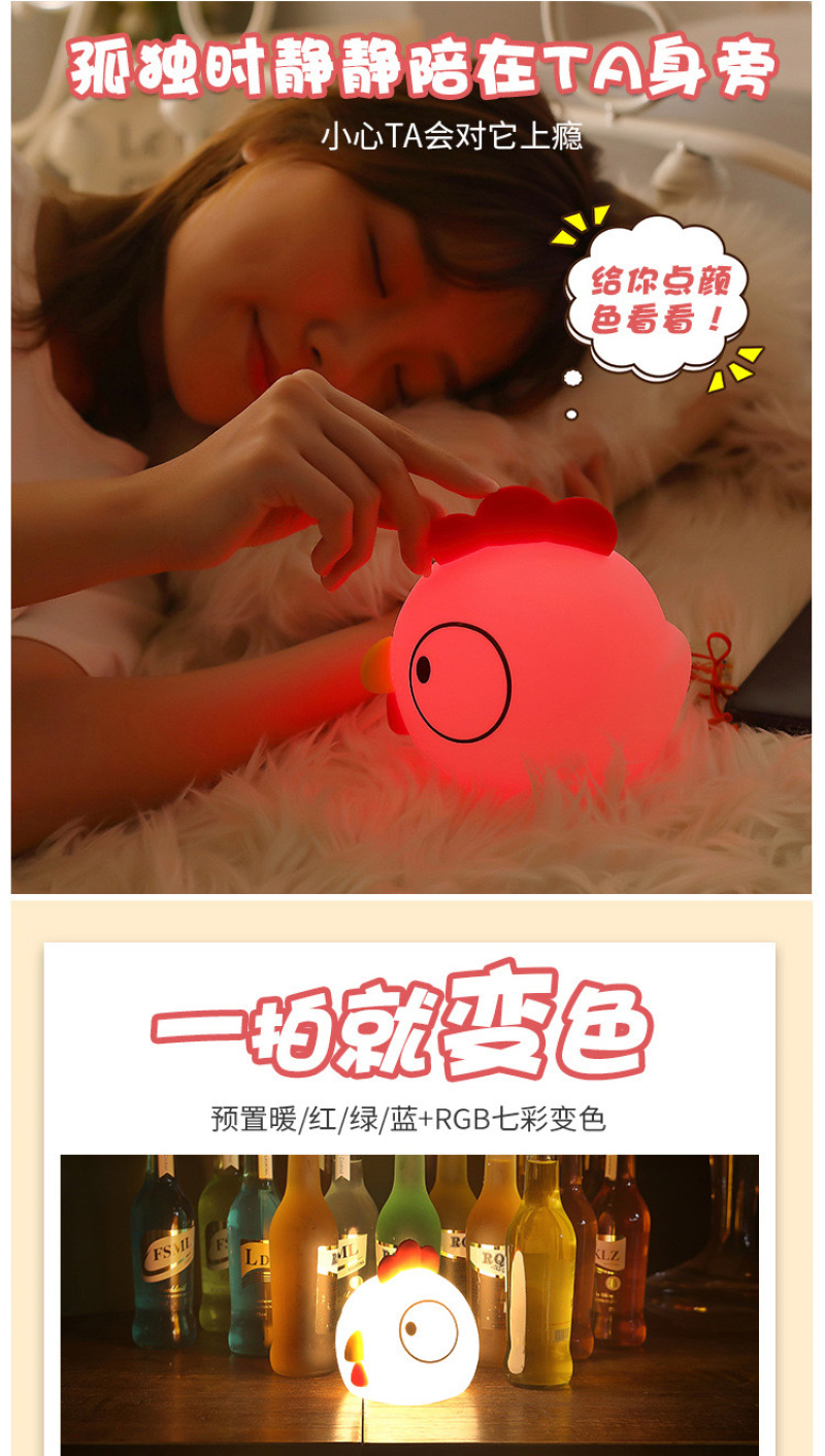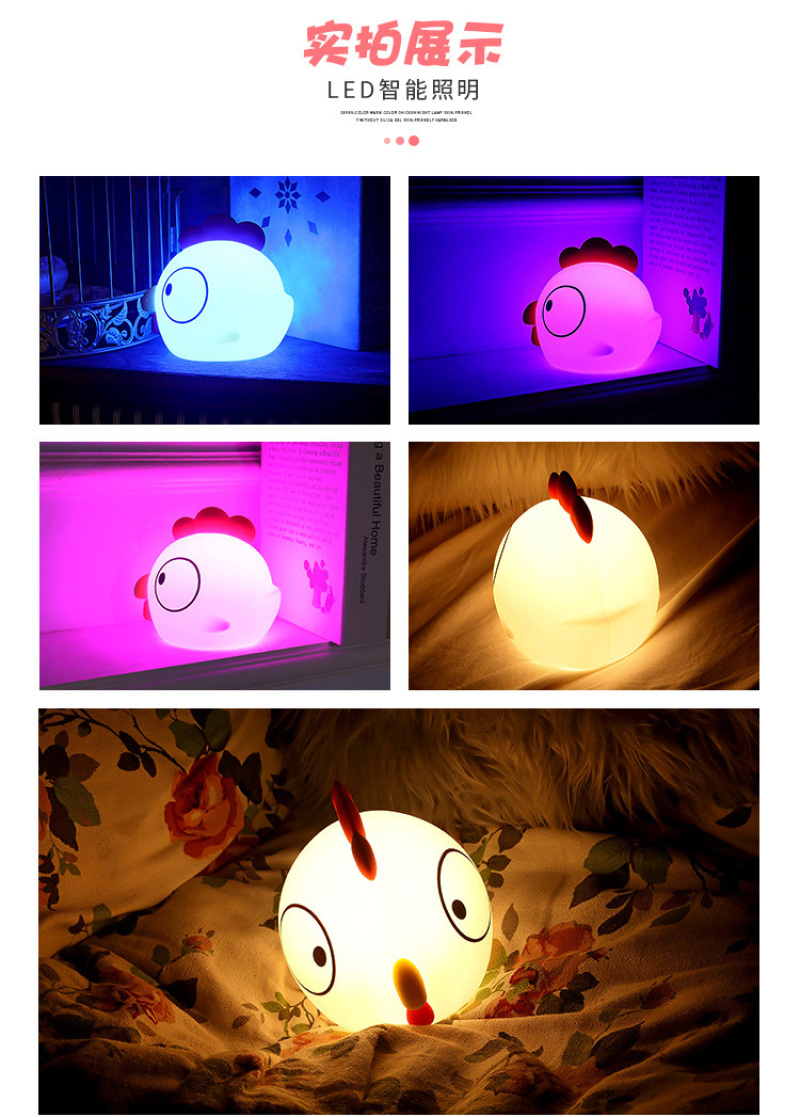 创意萌鸡硅胶夜灯 新款床头卡通拍拍遥控USB充电式迷你七彩小夜灯