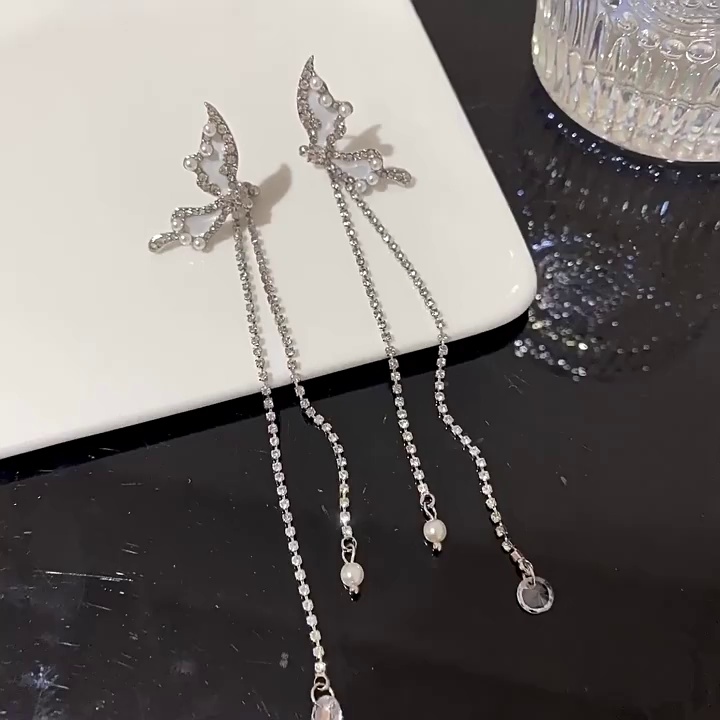 耳饰超仙气质蝴蝶耳骨夹ins无耳洞长款流苏蚊香盘耳夹女一件代发
