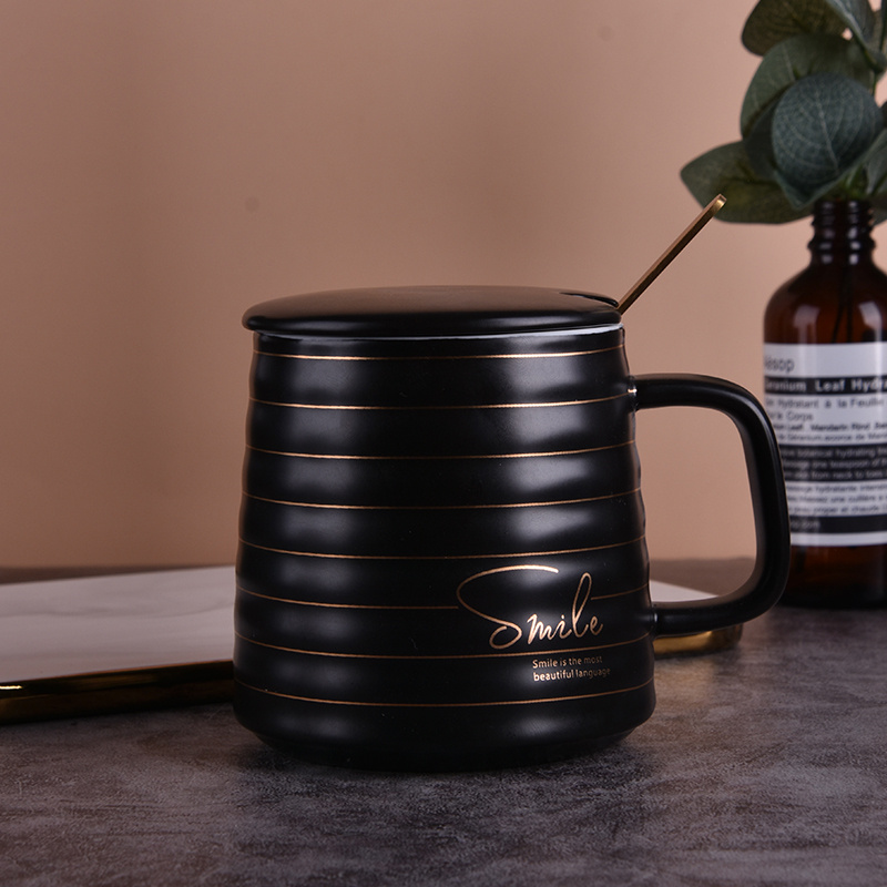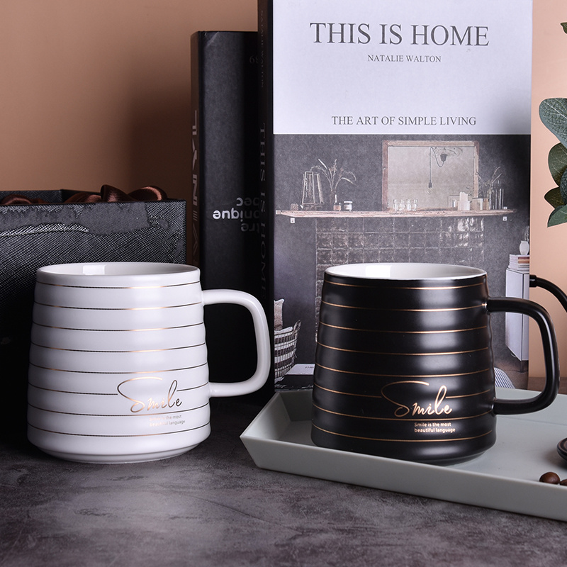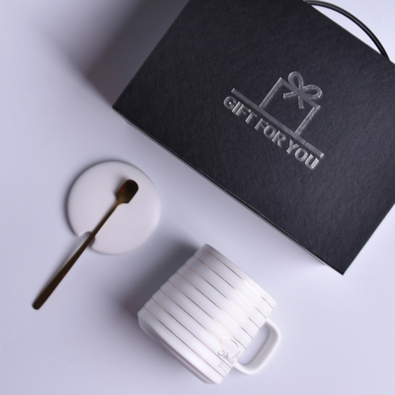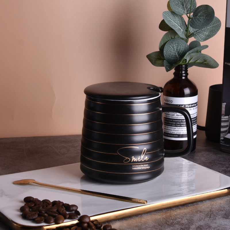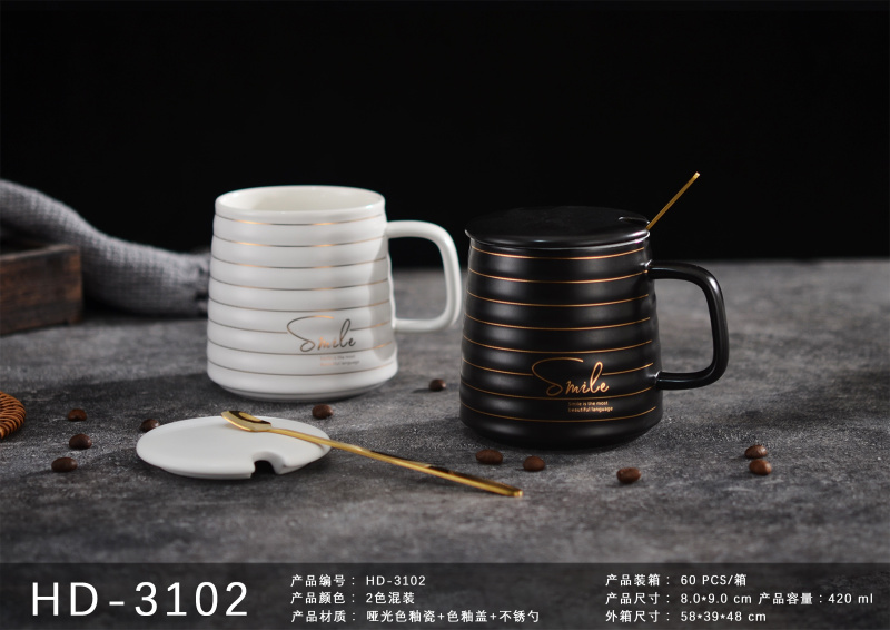 唯格陶瓷杯创意文艺马克杯带盖勺日式情侣款简约水杯(60个装)