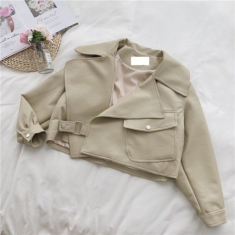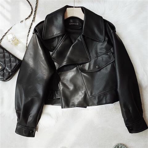 2019春秋新款翻领宽松机车皮衣夹克短款外套pu高腰显瘦韩版女大码