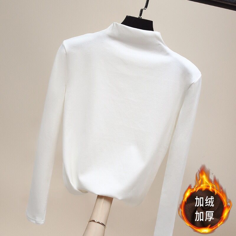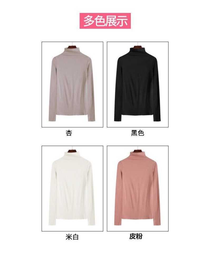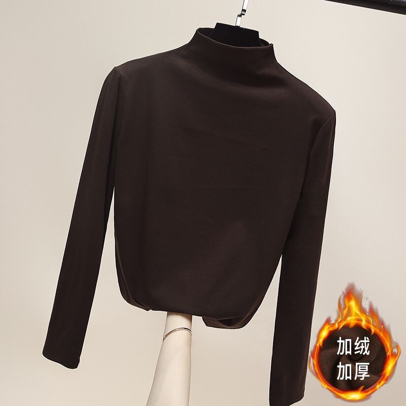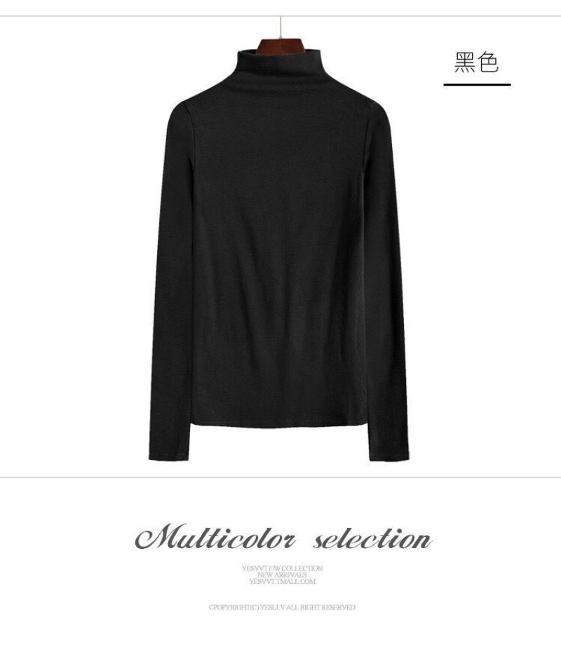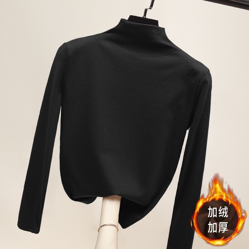 加绒加厚打底衫女长袖半高领秋冬季体恤纯色打底紧身上衣黑色t恤