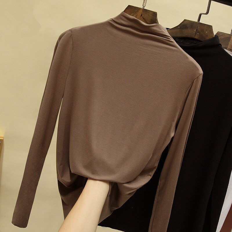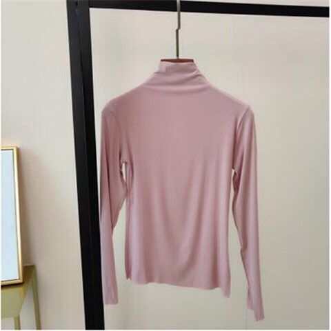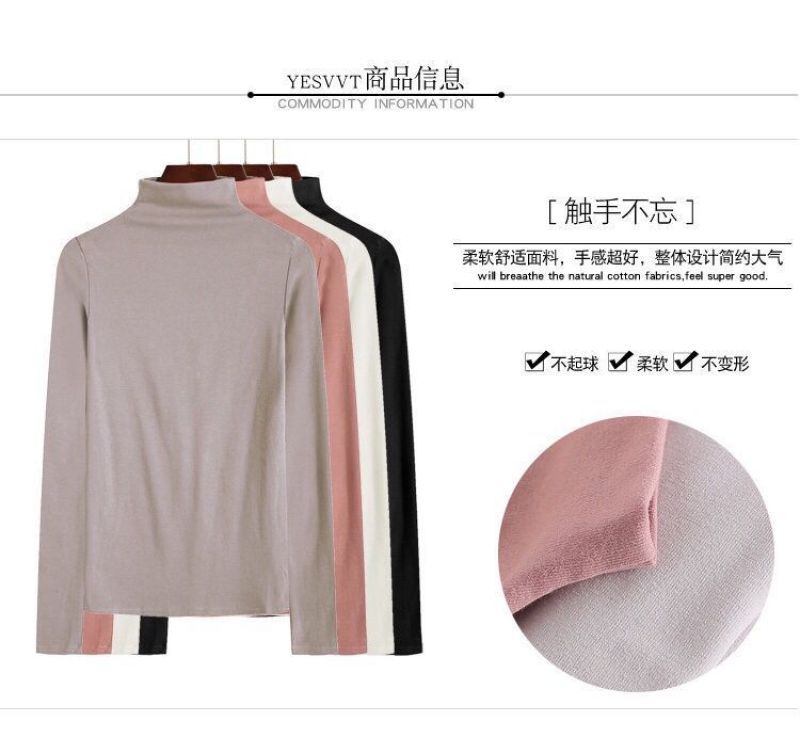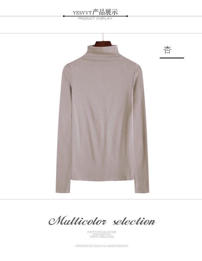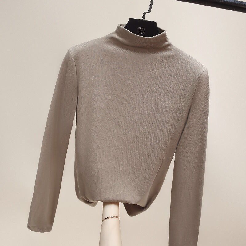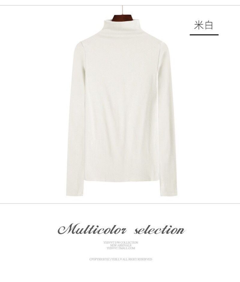加绒加厚打底衫女长袖半高领秋冬季体恤纯色打底紧身上衣黑色t恤