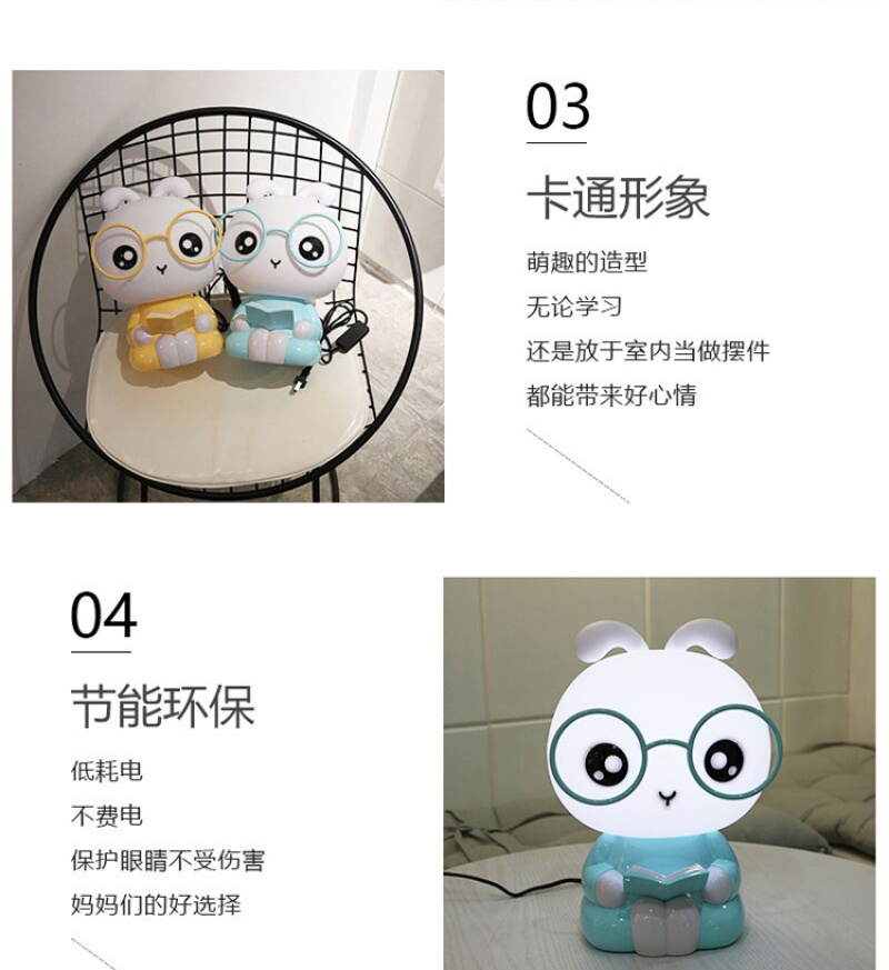 可爱小兔子床头夜灯插电卧室温馨喂奶灯装饰台灯起夜儿童房间61