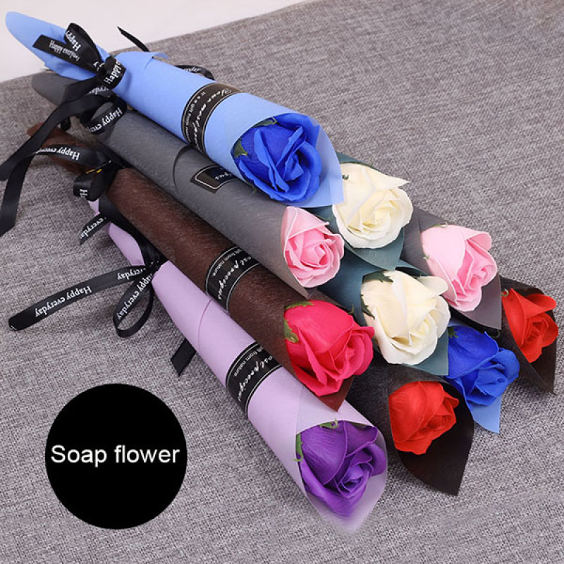 批发新款玫瑰单支亮款香皂花节日开业活动扫街促销圣诞情人节送礼