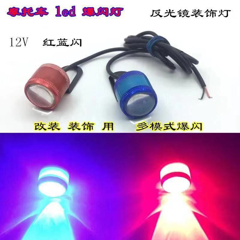 摩托车爆闪灯led超亮红蓝闪装饰灯12伏警示灯反光镜彩灯改装配件