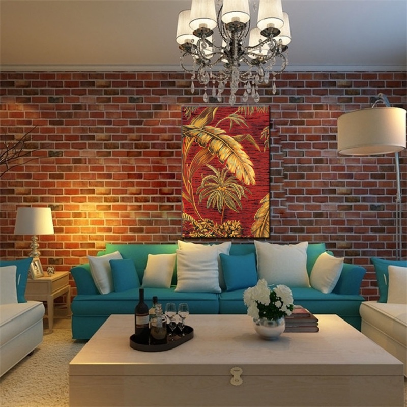 客厅装饰画走廊现代简约挂画轻奢叶子壁画过道金叶子油画