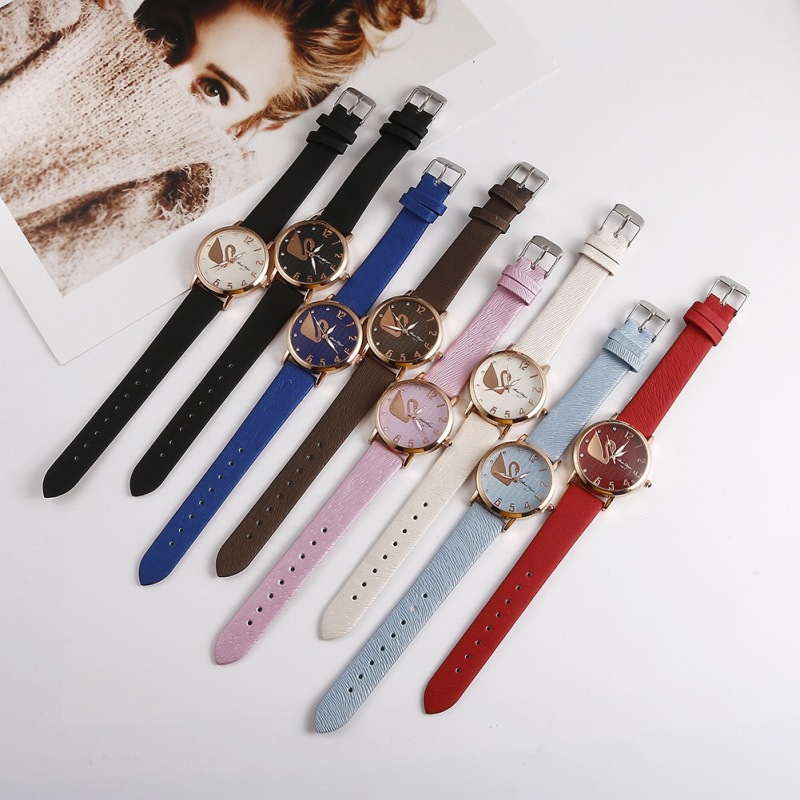 2019外贸爆款 镶钻超薄时尚女款手表 简约学生手表 小天鹅图案