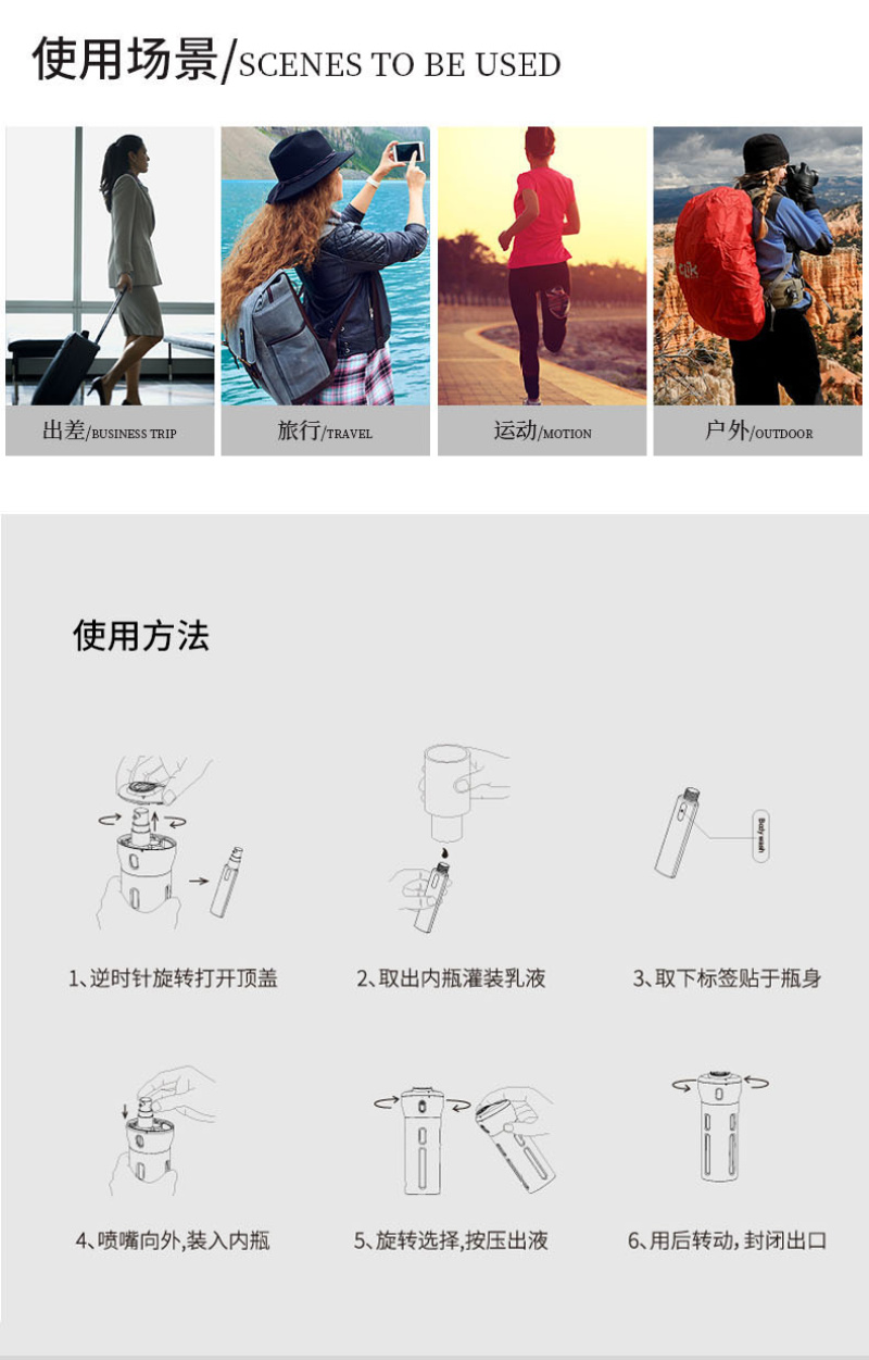 旅行洗漱分装瓶四合一套装按压式便携化妆品水乳液护肤品旅游瓶子