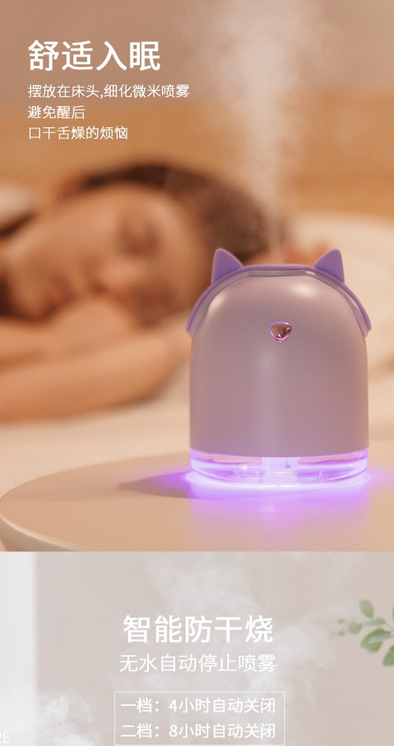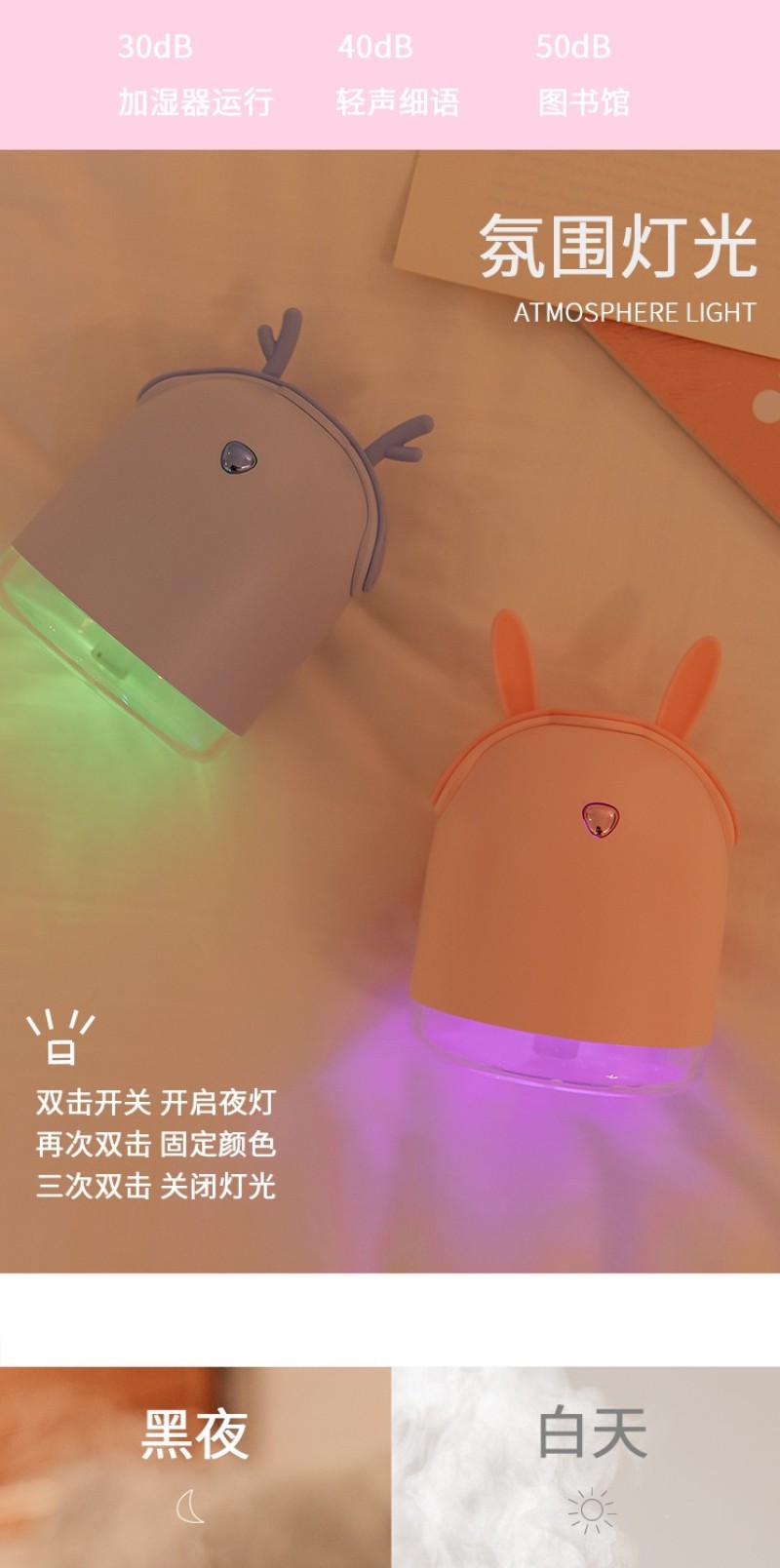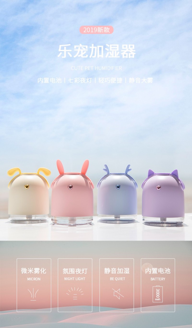 乐宠 加湿器宿舍学生桌面办公小型便携式USB静音空气车载喷雾车用