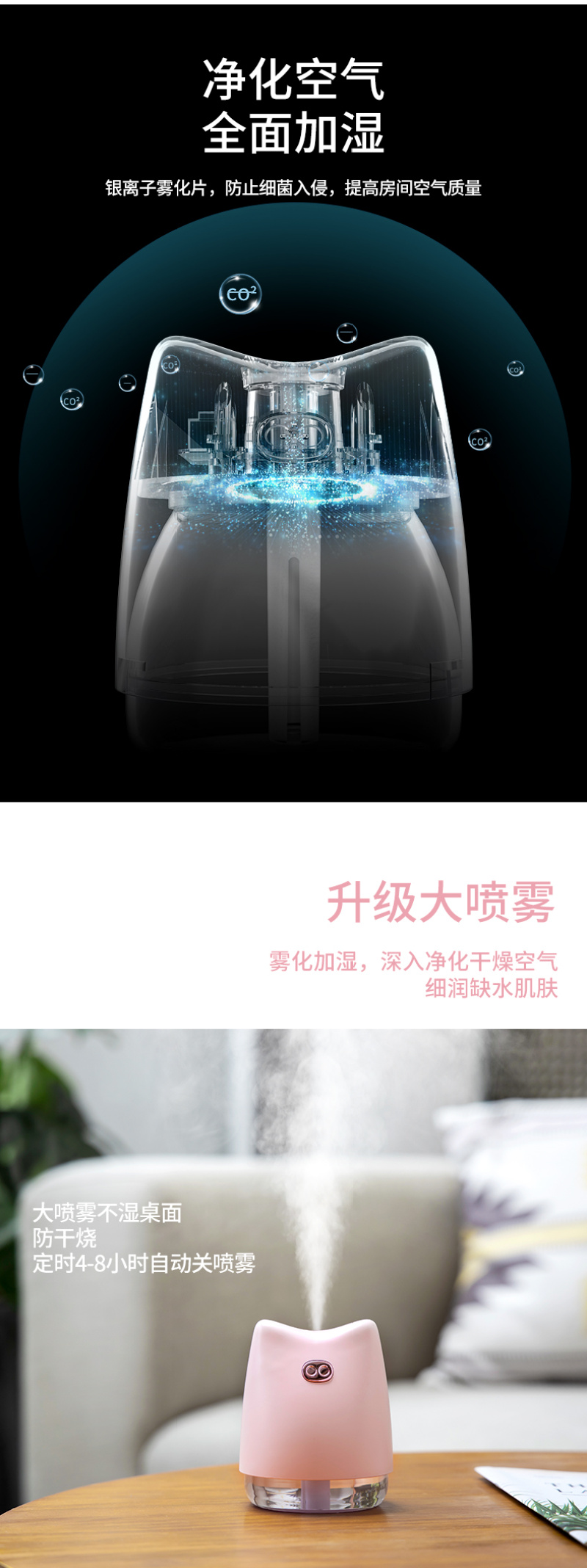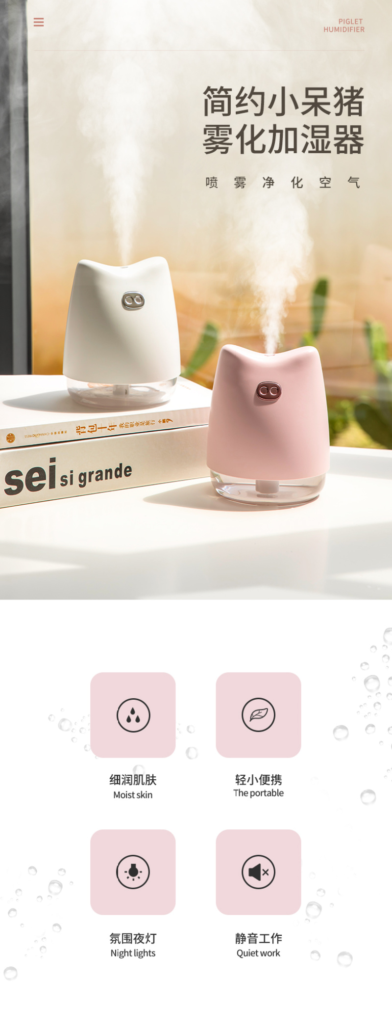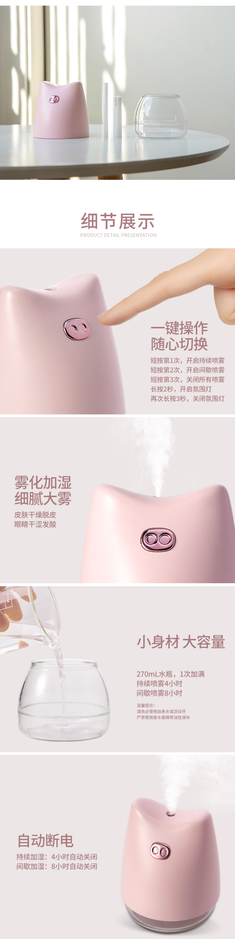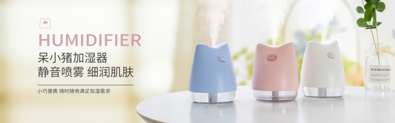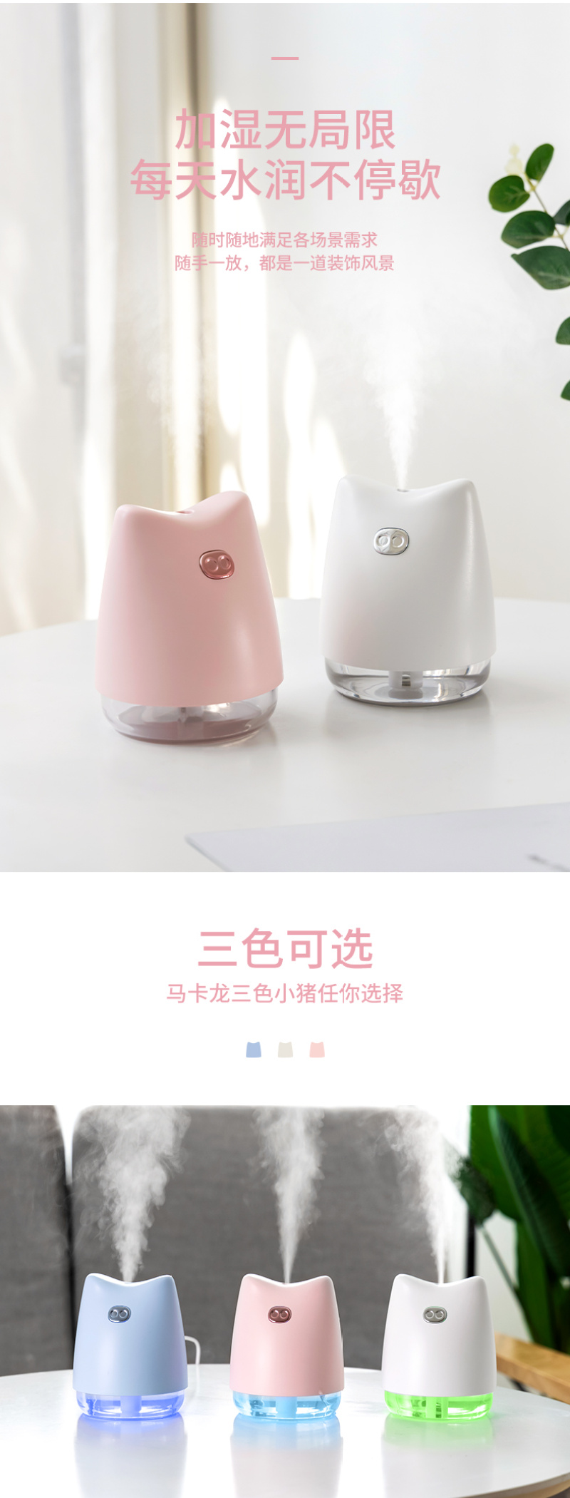 新款呆小猪加湿器萌趣简约七彩灯车载办公桌面空气雾化加湿器