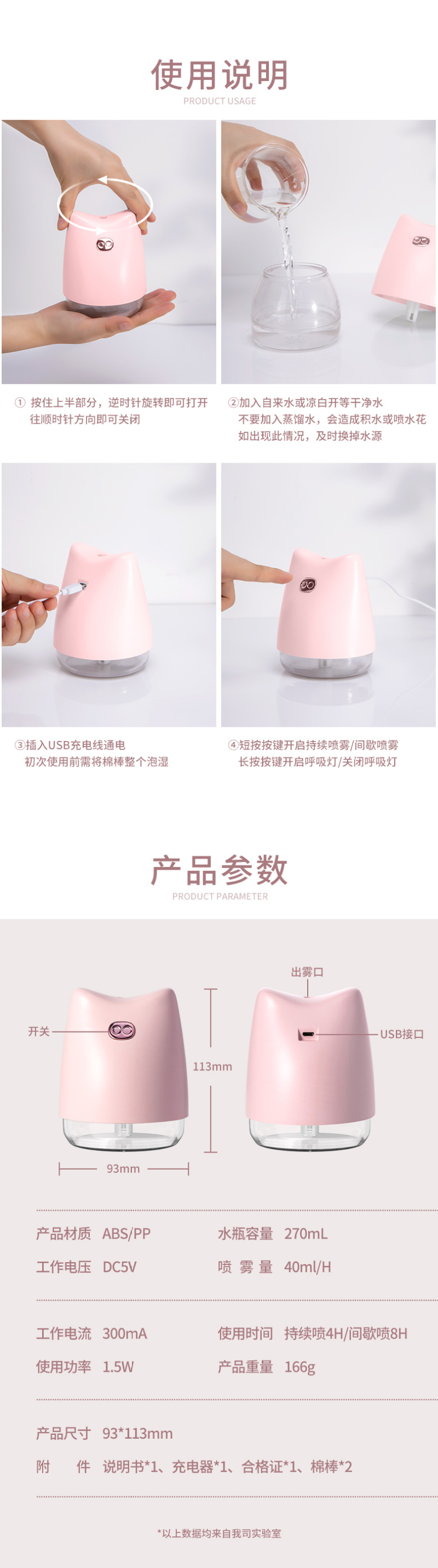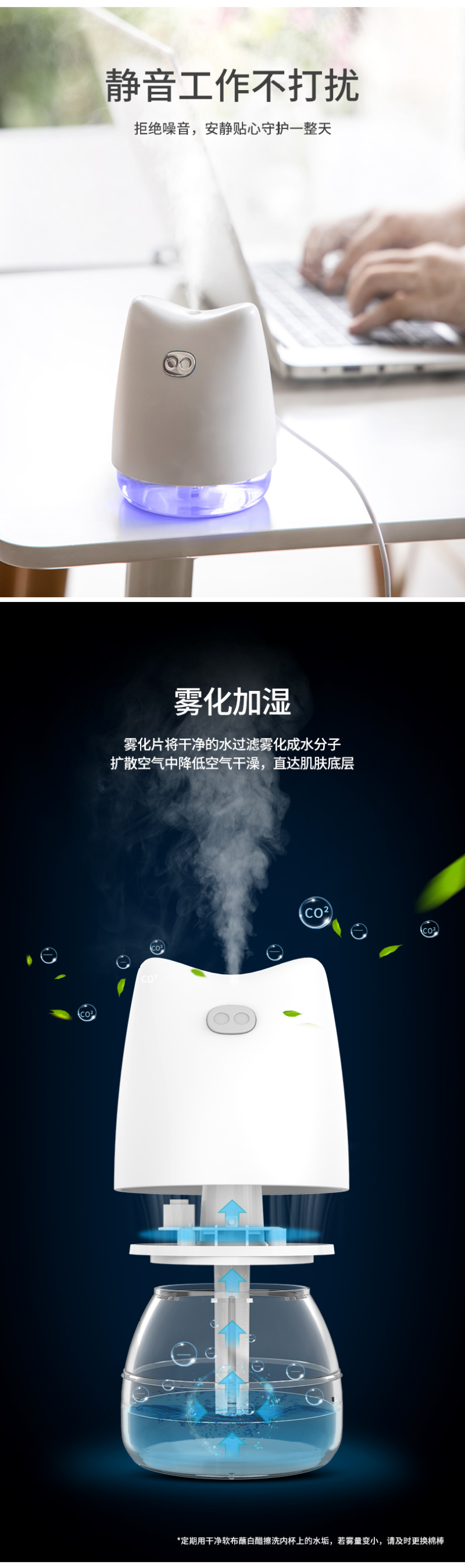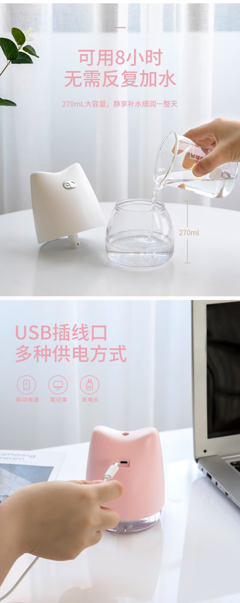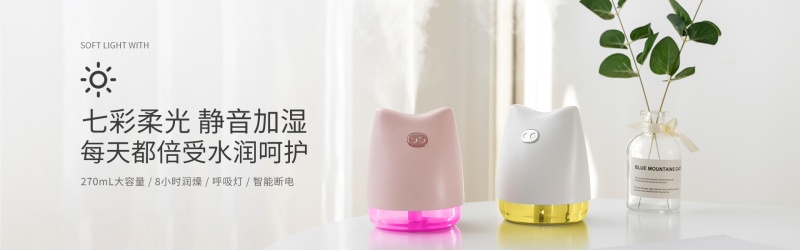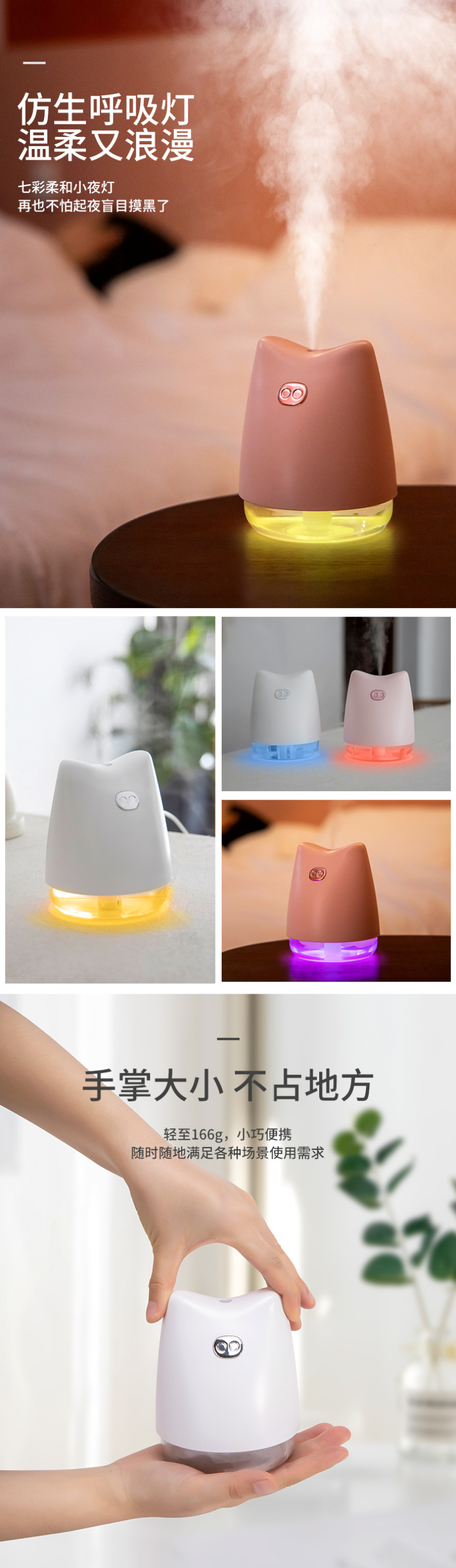 新款呆小猪加湿器萌趣简约七彩灯车载办公桌面空气雾化加湿器