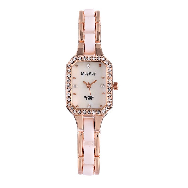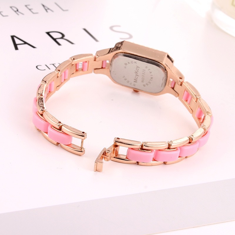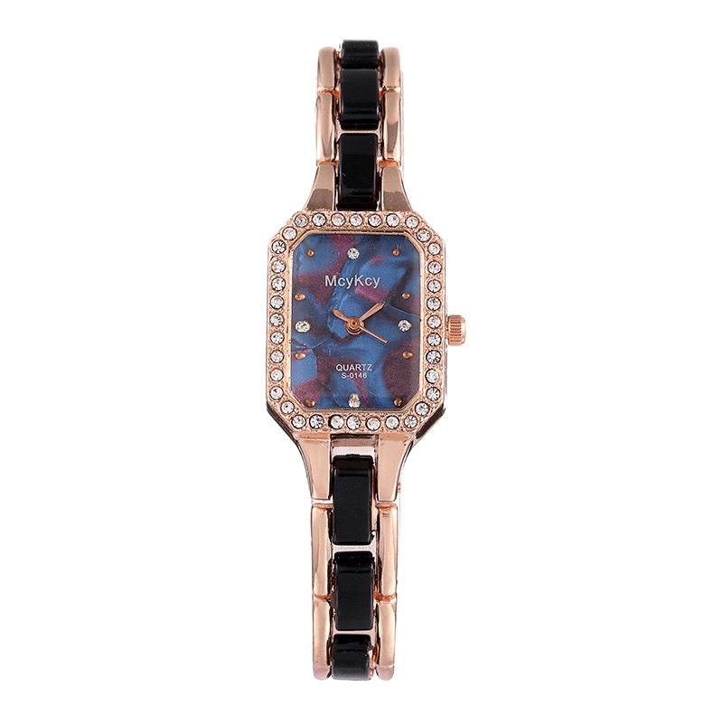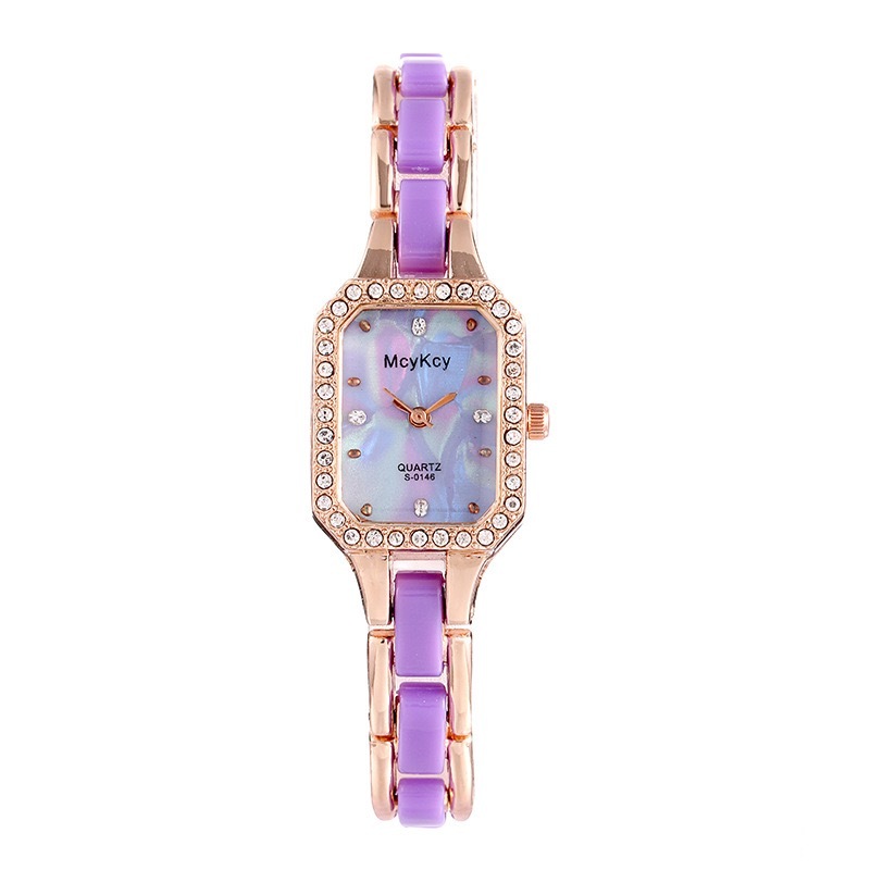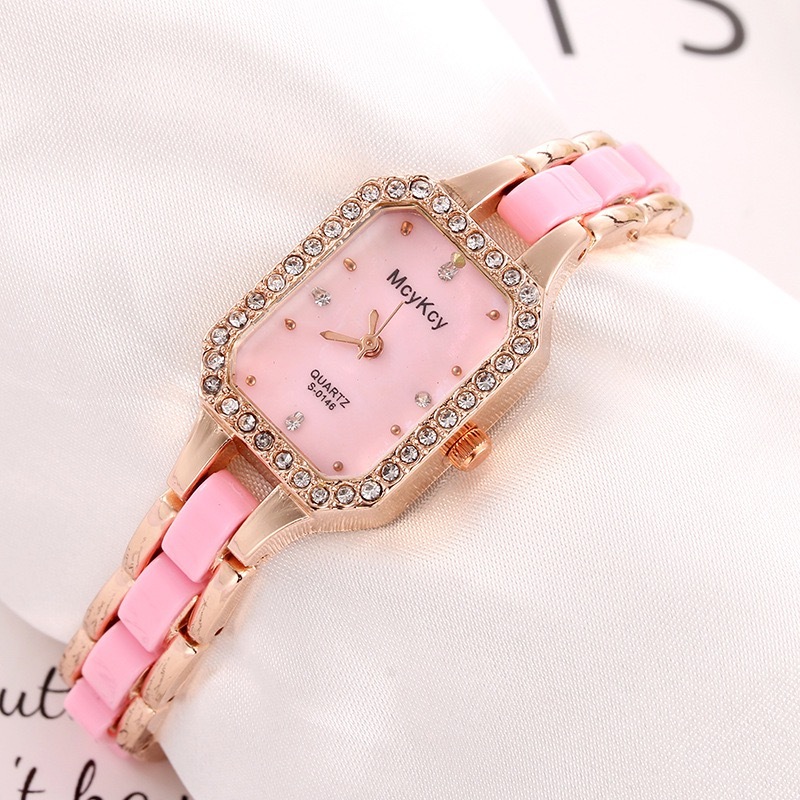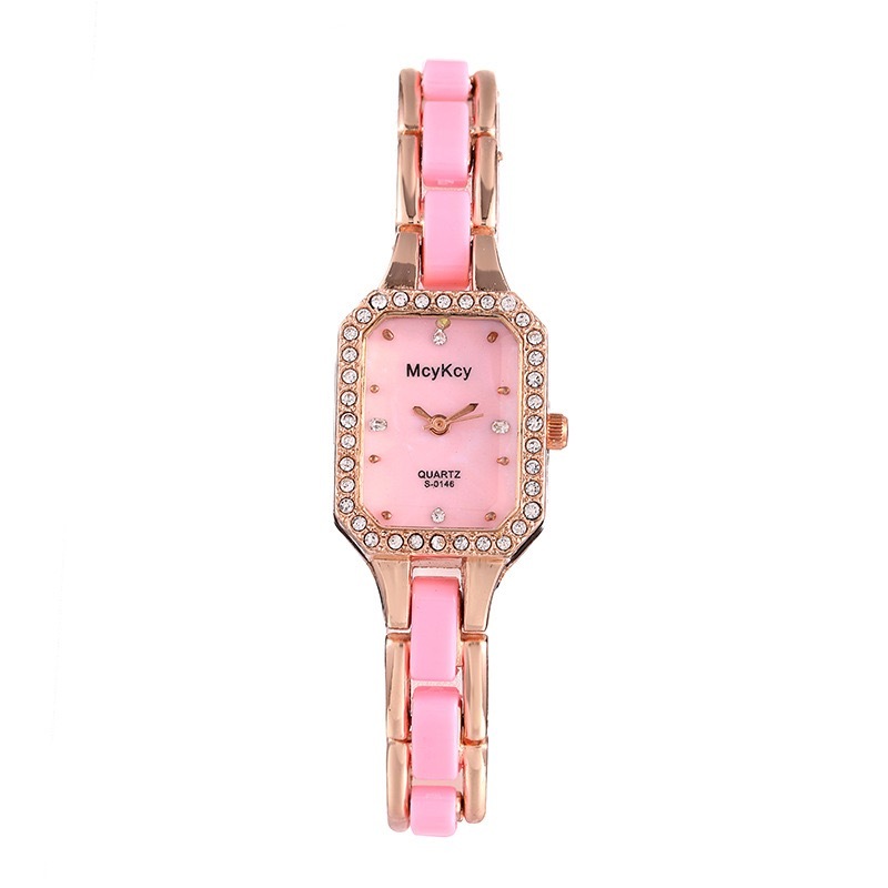 热销简约镶钻方形贝壳面女士休闲时尚卡胶不锈钢学生表带腕表