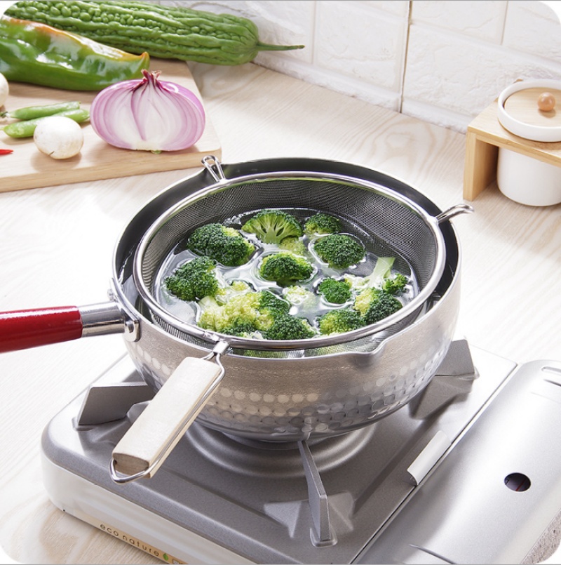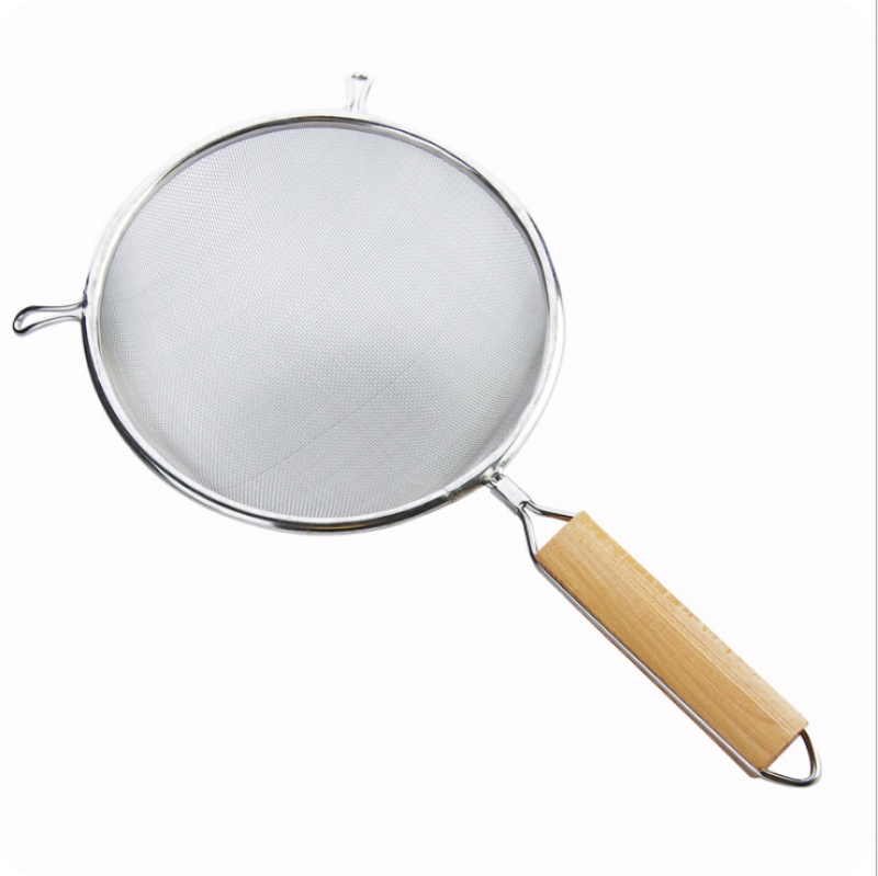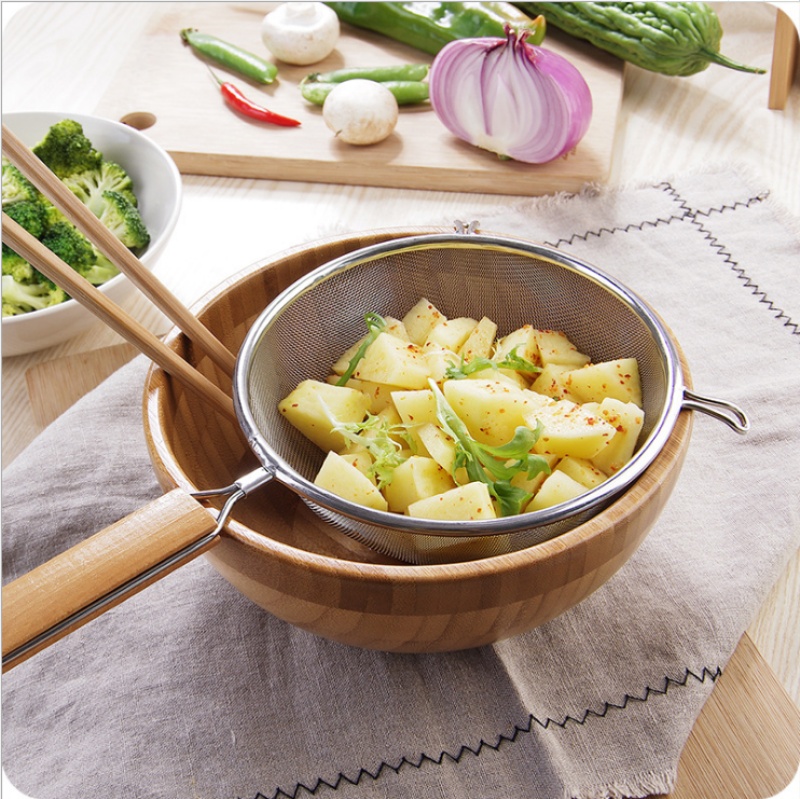 不锈钢大号漏勺木柄双耳油炸滤油捞勺家用