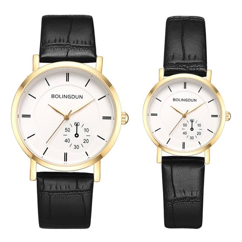 ebay热销时尚情侣手表单眼四针商务PU皮带石英表 跨境热销批发