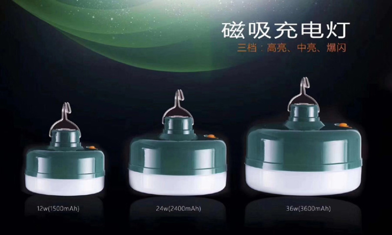 LED智能应急球泡灯 12/24/36W停电户外地摊灯3挡调节 带磁铁吸附